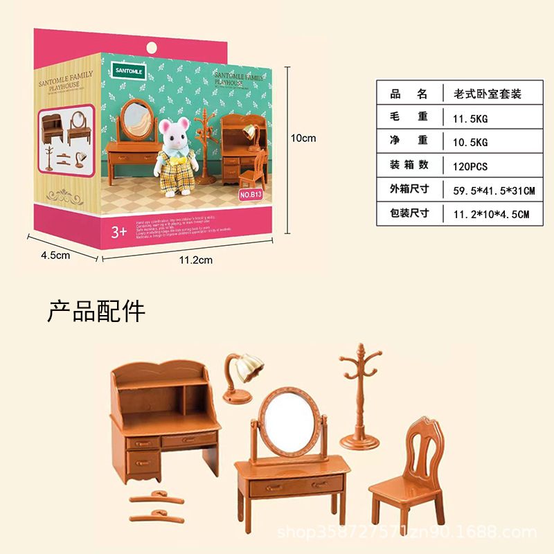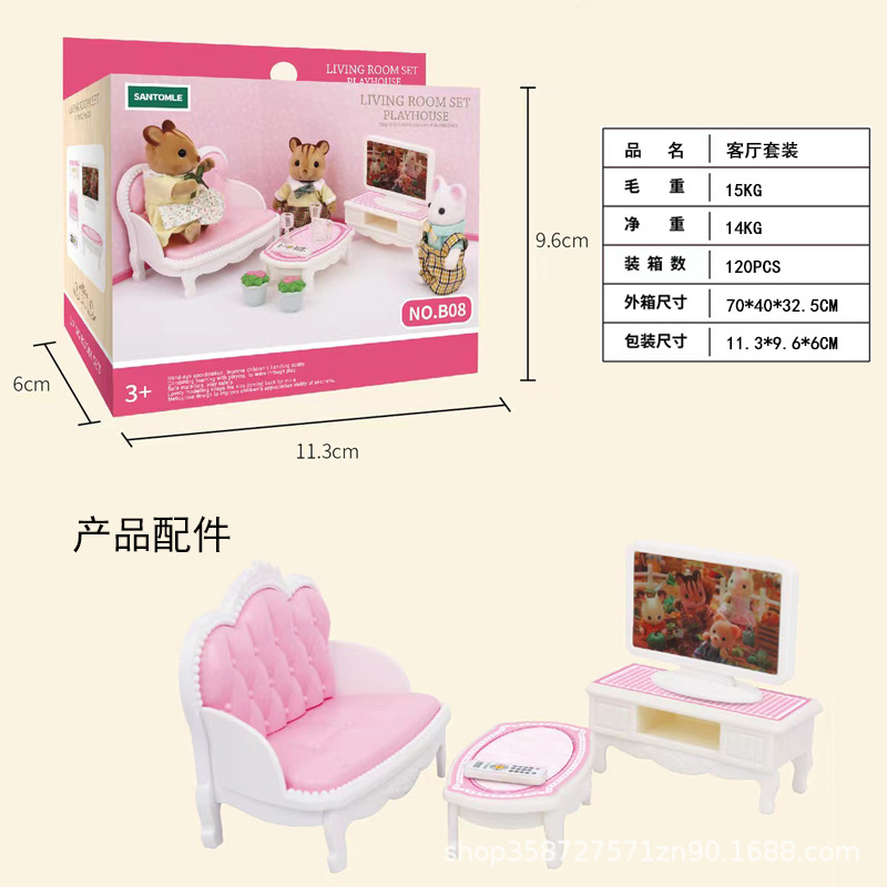 숲 빌라 세트 장난감 숲 동물 가족 미니 가구 모델 거실 침실 TV 냉장고 장식품스토어 가기