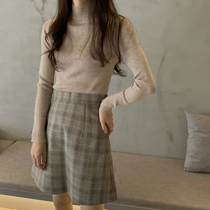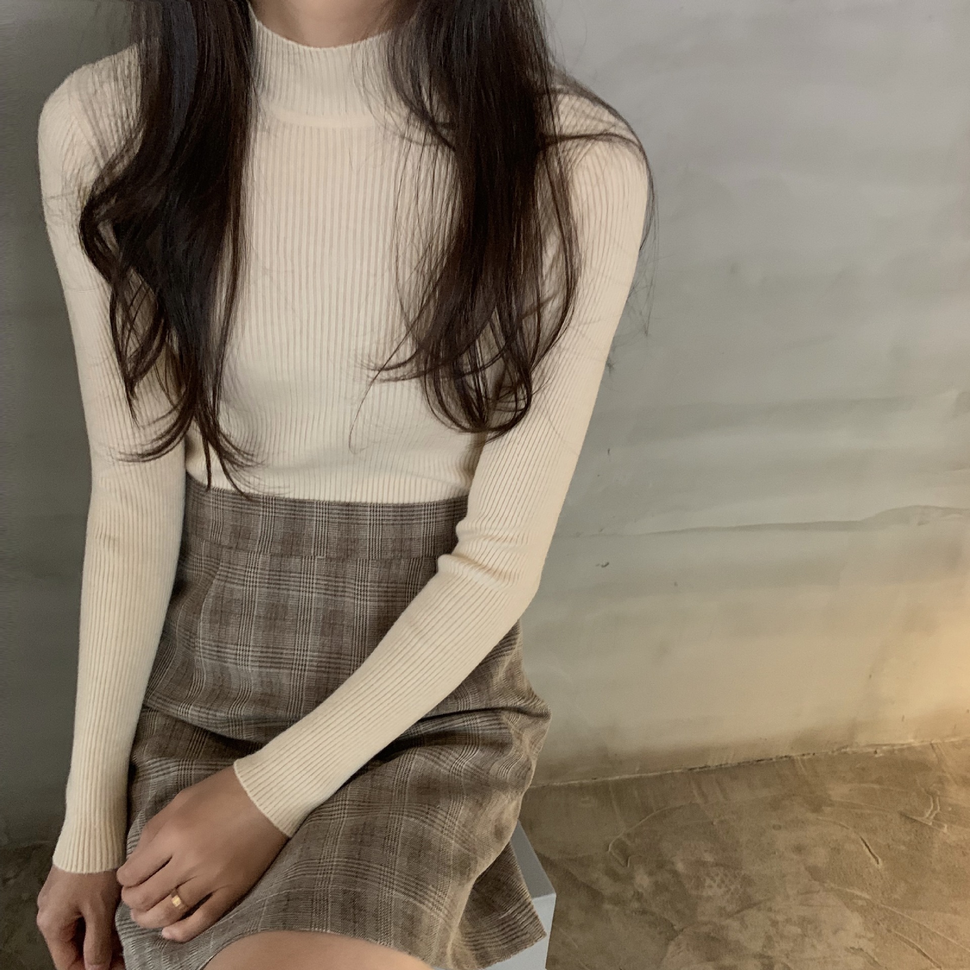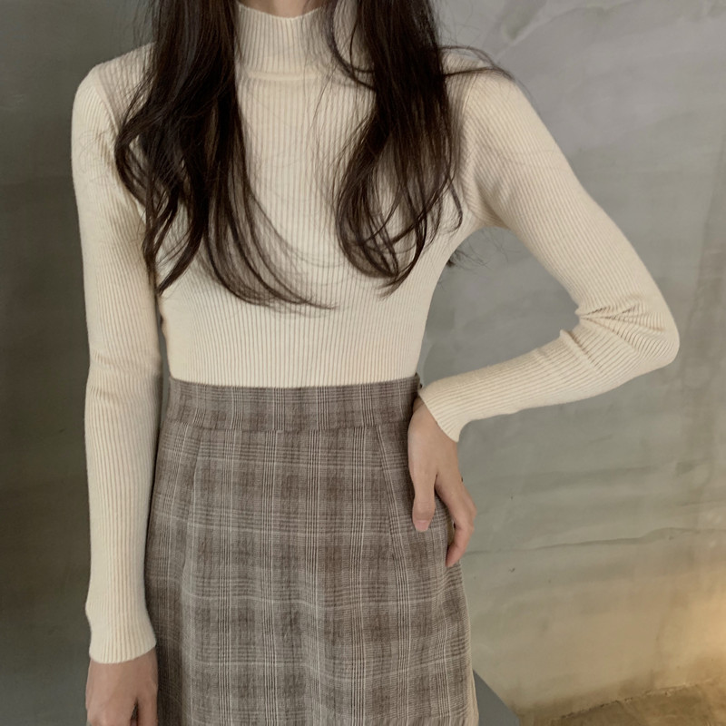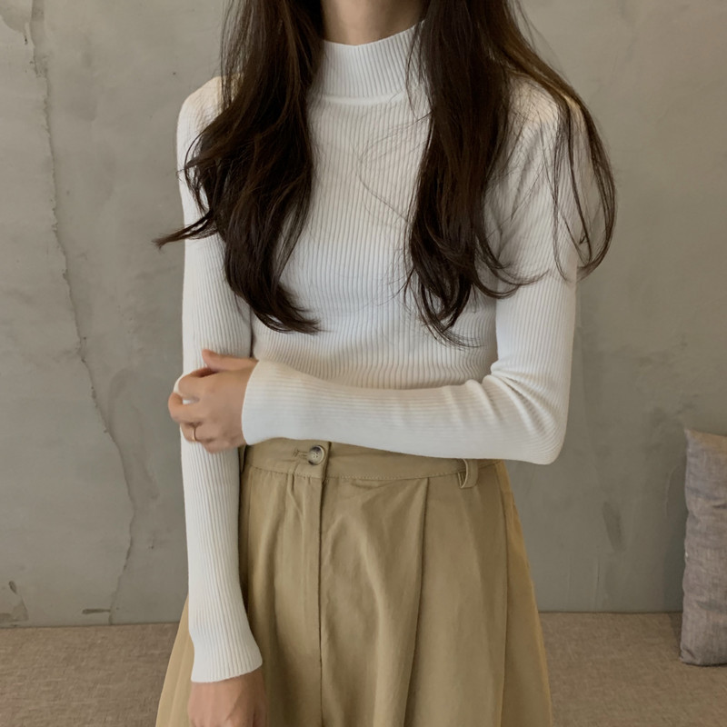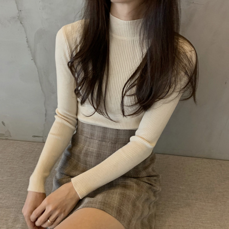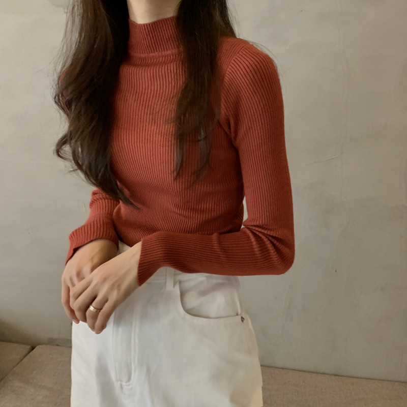 블랙 니트베이스 셔츠 여성의 가을과 겨울 2022 새로운 패션 세련된 슬림 핏 미들 넥 하프 터틀넥 스웨터