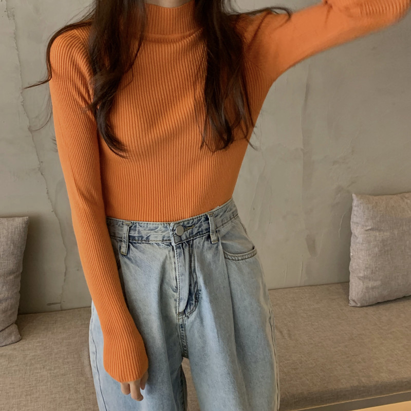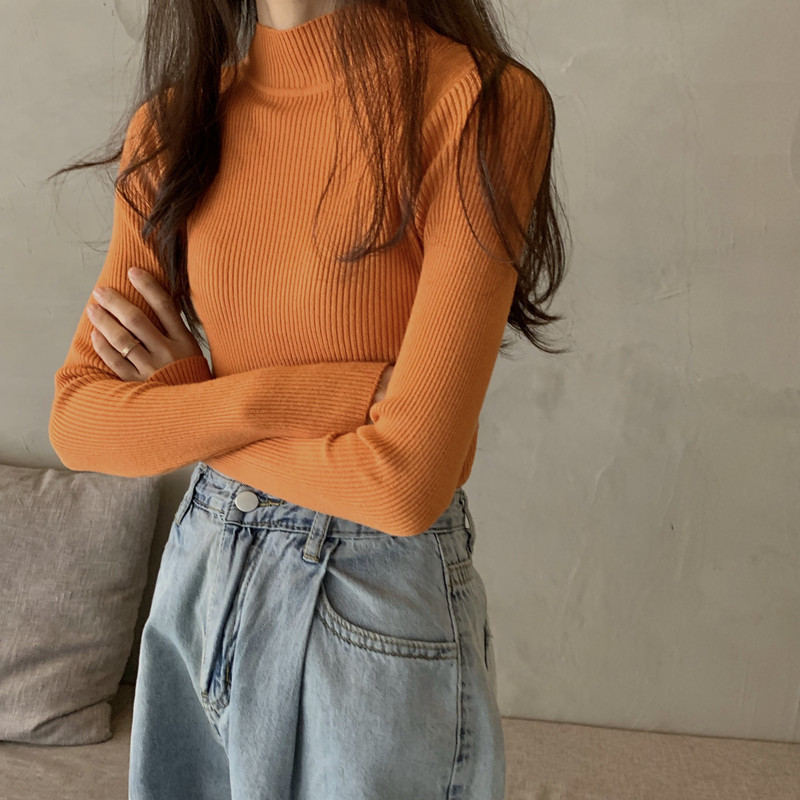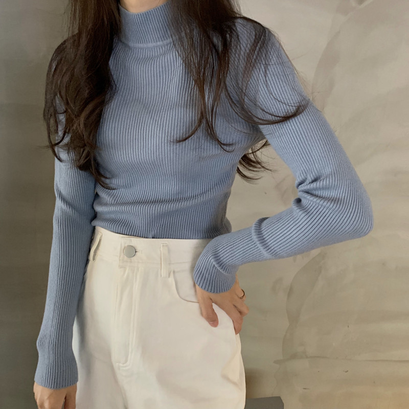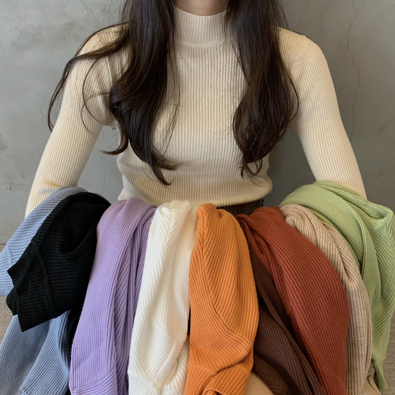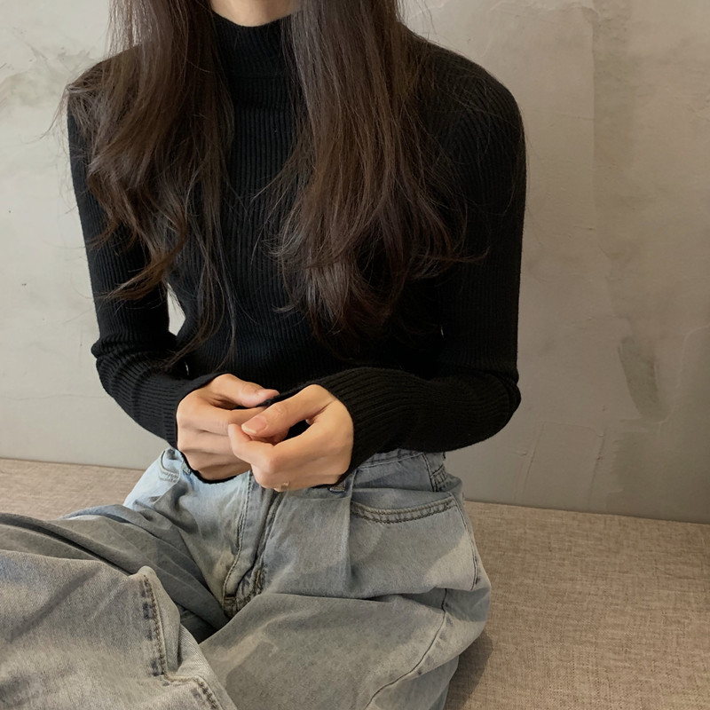 블랙 니트베이스 셔츠 여성의 가을과 겨울 2022 새로운 패션 세련된 슬림 핏 미들 넥 하프 터틀넥 스웨터스토어 가기