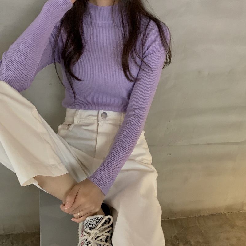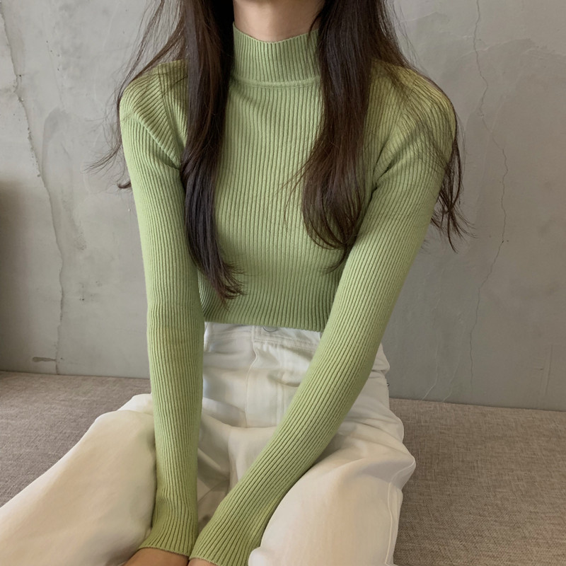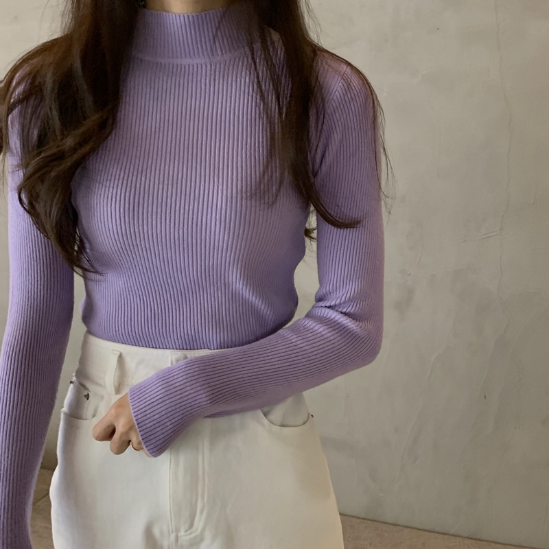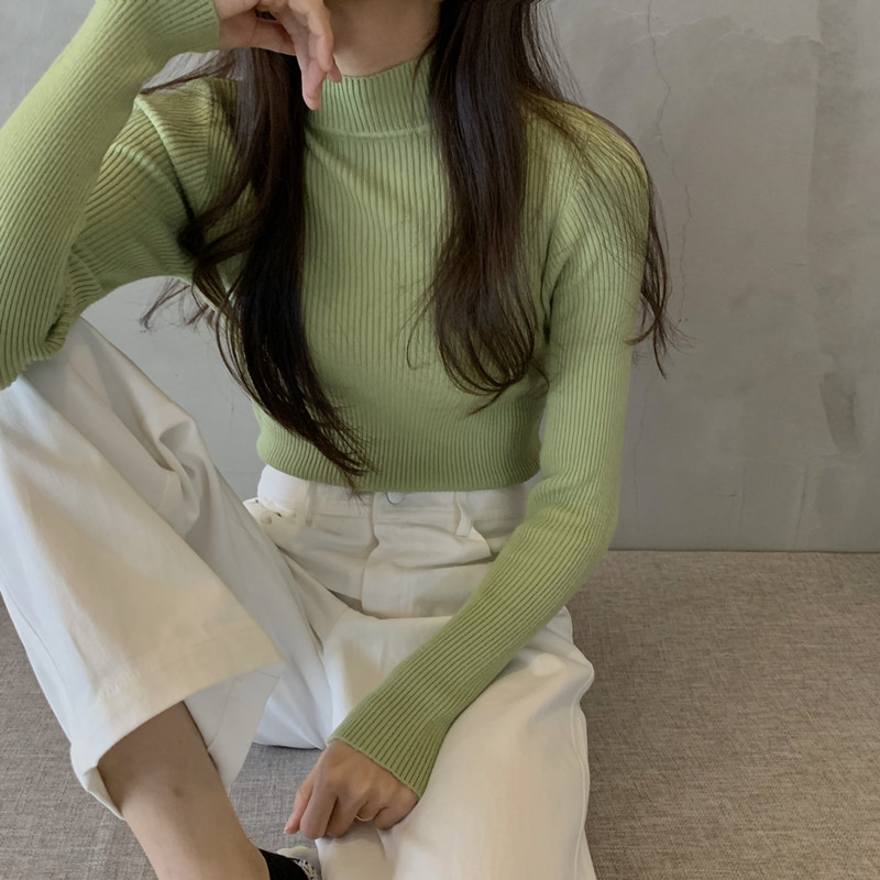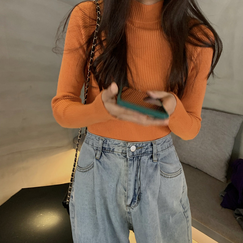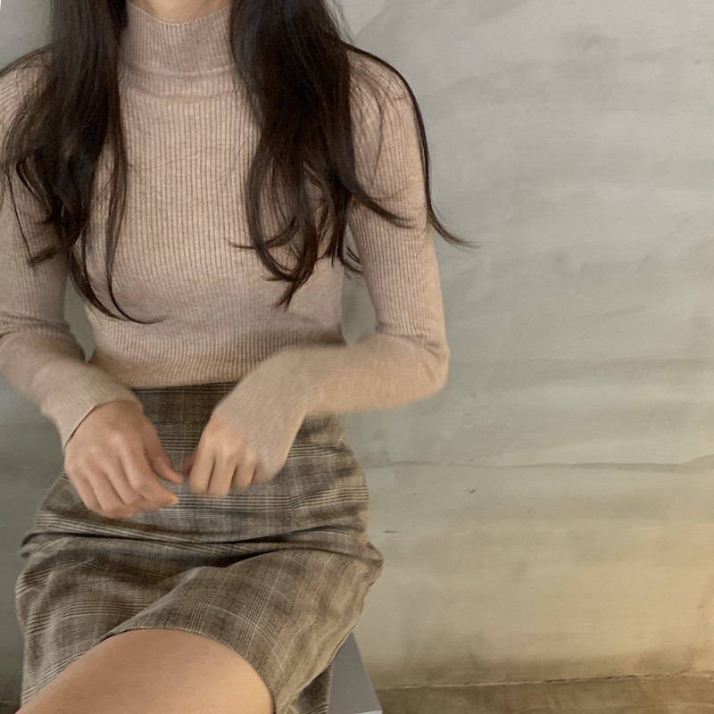 블랙 니트베이스 셔츠 여성의 가을과 겨울 2022 새로운 패션 세련된 슬림 핏 미들 넥 하프 터틀넥 스웨터스토어 가기
