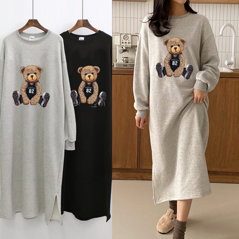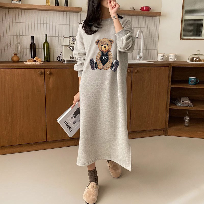작은 기모 긴 스웨터 치마 가을 2023 새로운 느슨한 겉옷 프랑스 원피스 플러스 사이즈 여성 의류스토어 가기