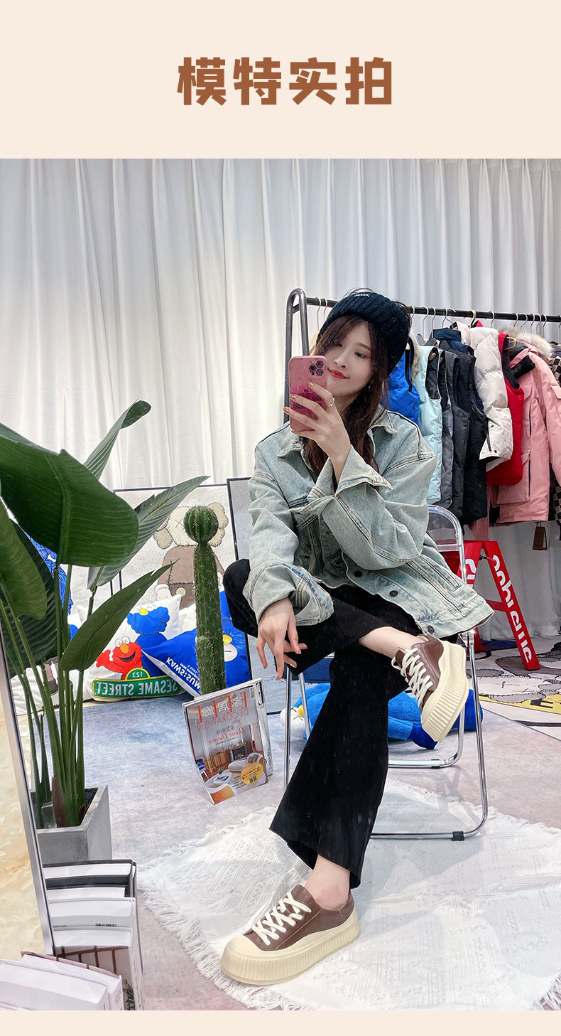 2022 가을과 겨울 새로운 가죽 두꺼운 밑창 증가 신발 기모 비스킷 신발 여성 스포츠 캐주얼 다목적 플랫 신발스토어 가기