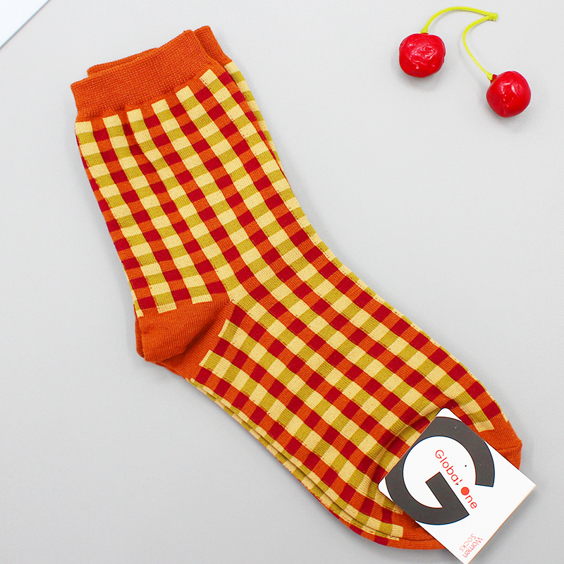 2022 가을과 겨울 새로운 줄무늬 격자 무늬 한국 여성 양말 한국 East Gate