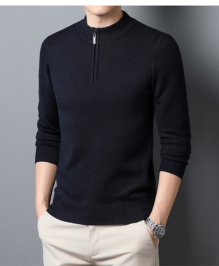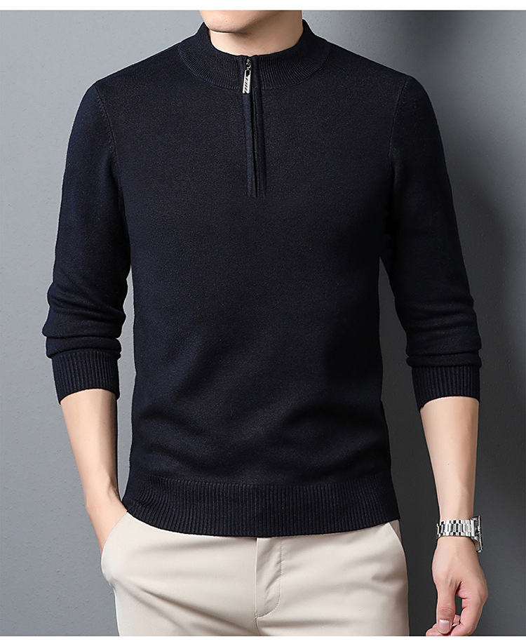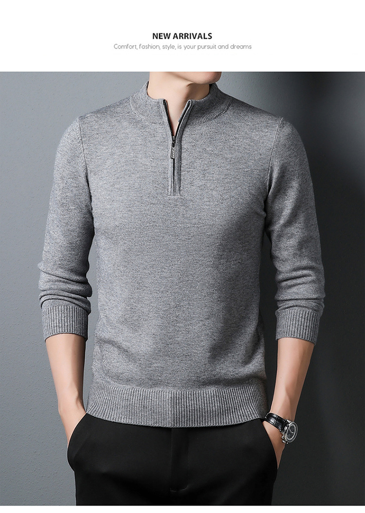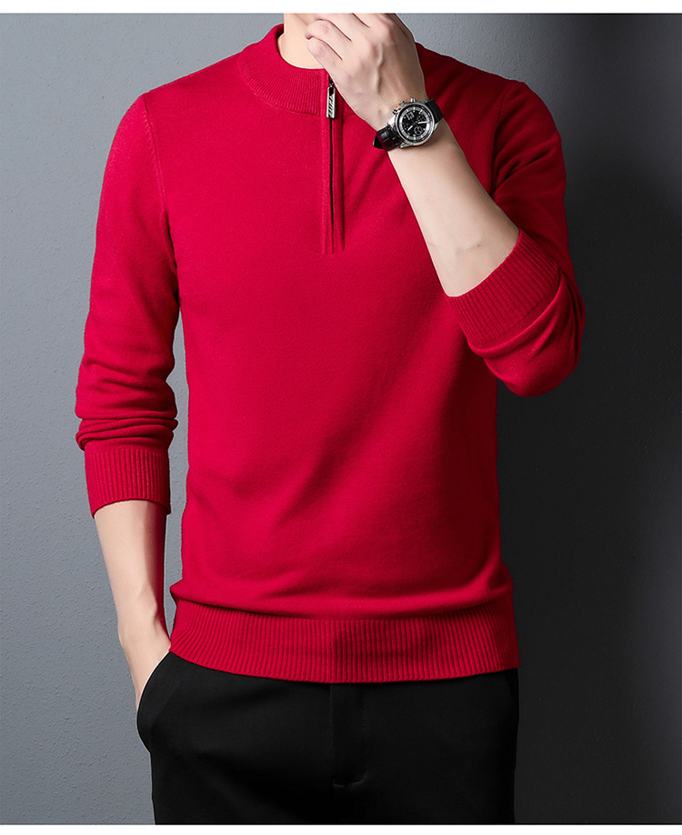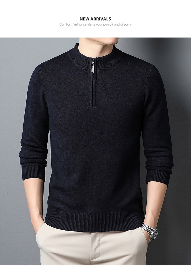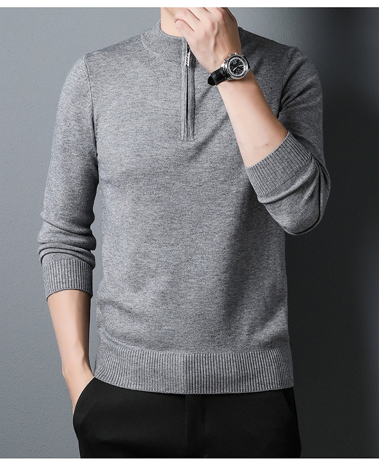 남자의 새로운 지퍼 칼라 니트 단색 기본 의류 최고 남성 캐주얼 가을 새로운 9908