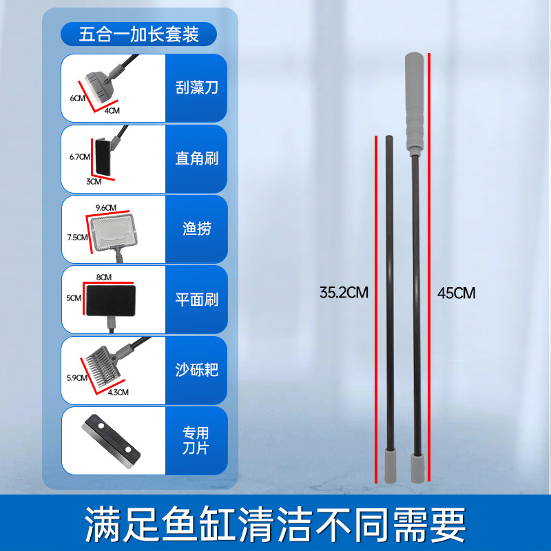 어항 청소 세트 어항 브러시 수족관 5-in-one 청소 도구 낚시 그물 긁기 조류 칼 청소 죽은 모서리 없음스토어 가기