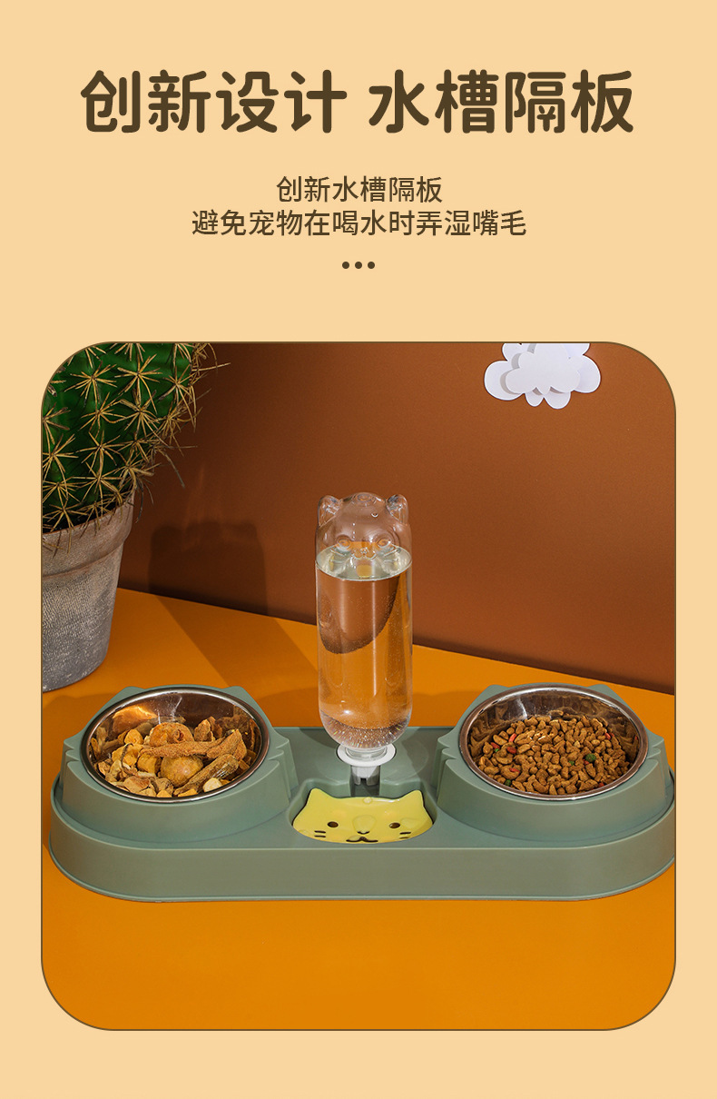 국경을 넘는 애완동물 그릇, 자동 급수 고양이 그릇, 뒤집힘 방지 강아지 밥그릇, 이중 밥그릇, 고양이용 애완동물 목 보호 그릇
