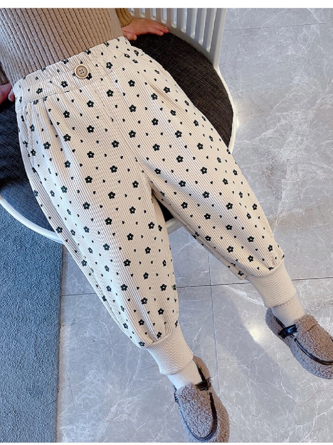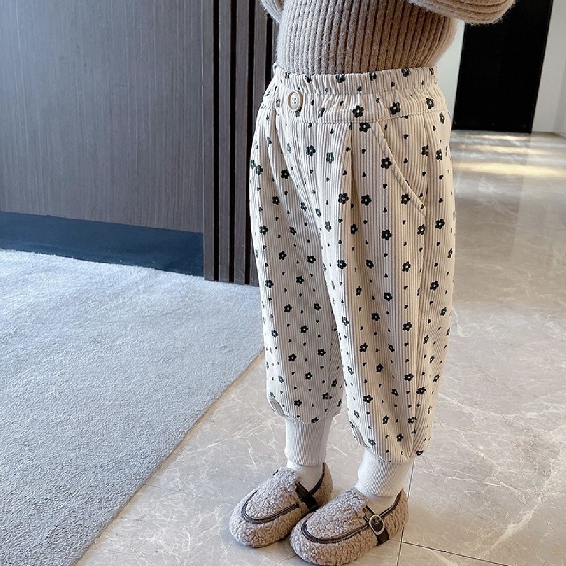 두꺼운 가을과 겨울 겉옷을 기모 여아 코듀로이 바지 착용 서양식 어린이 꽃 원피스 벨벳 캐주얼 스포츠 바지스토어 가기