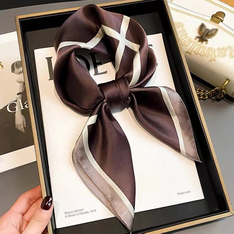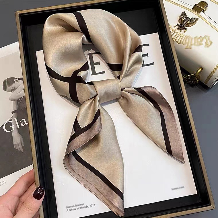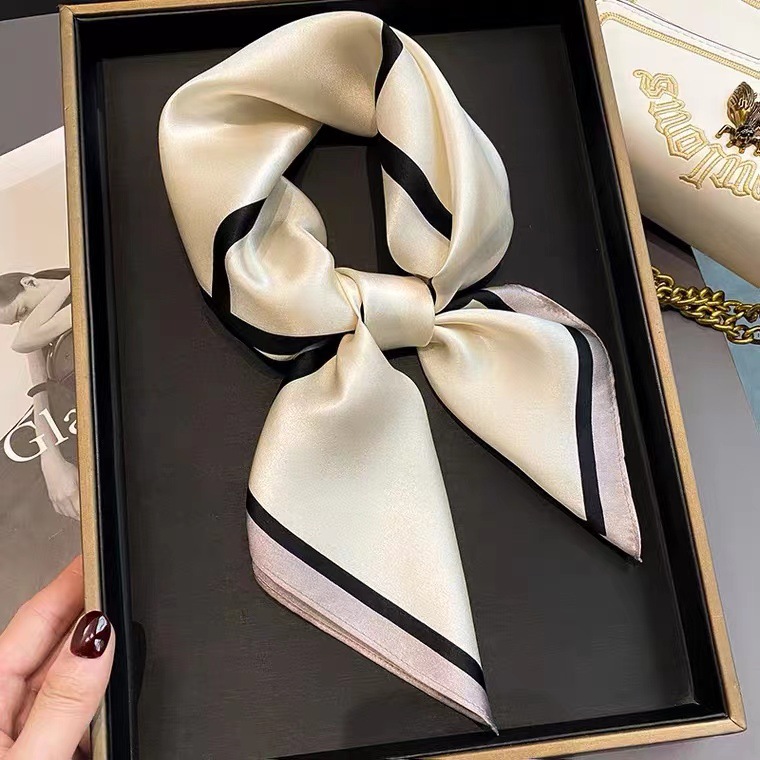 한국 스타일의 간단한 라인 장식 70cm 실크 멀 베리 실크 스카프 모든 매칭 스카프 여성 전문 매칭 스퀘어 스카프 선물스토어 가기