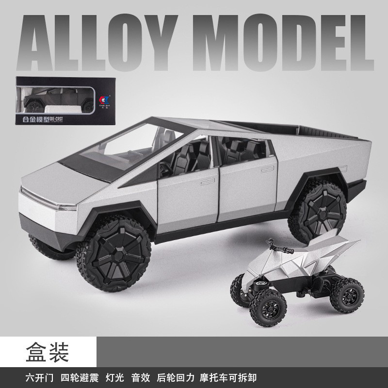 Chezhi 1:24 테슬라 사이버 픽업 어린이 장난감 풀백 자동차 시뮬레이션 합금 자동차 모델 컬렉션 장식품스토어 가기