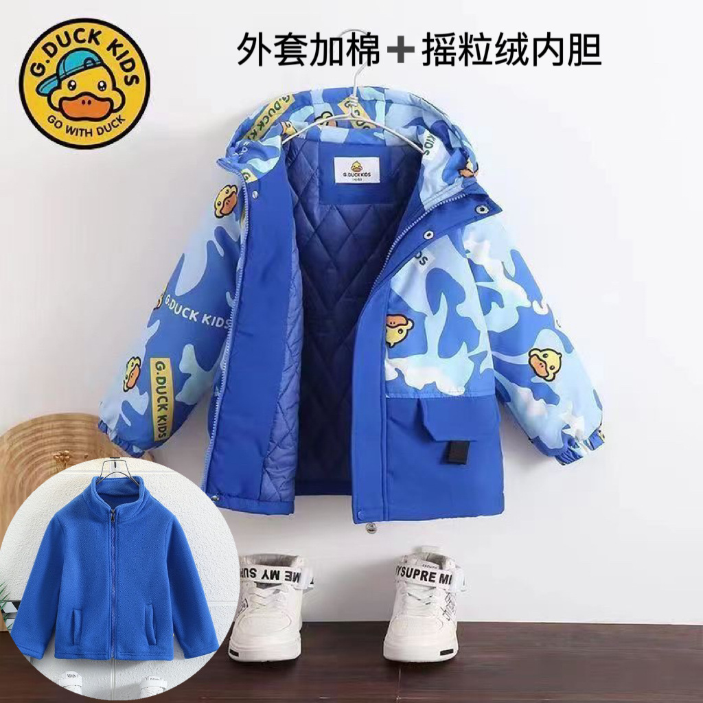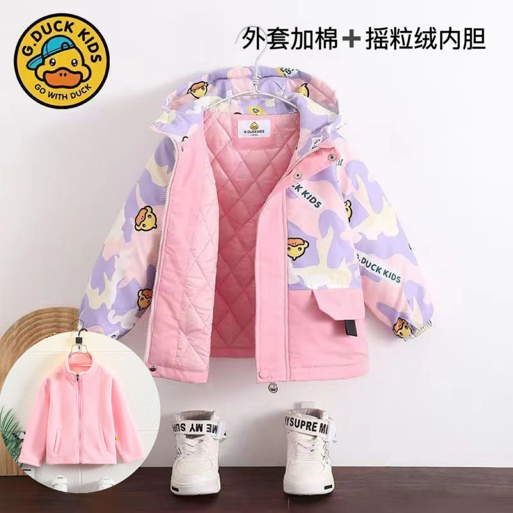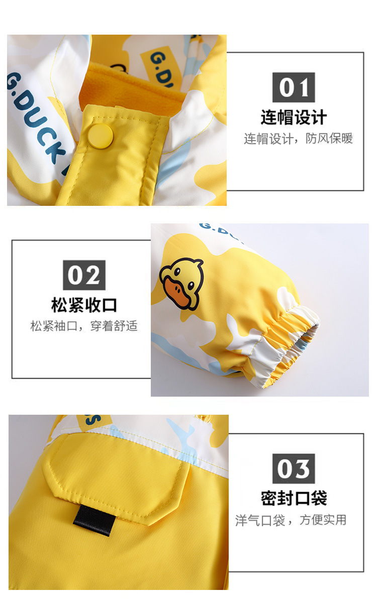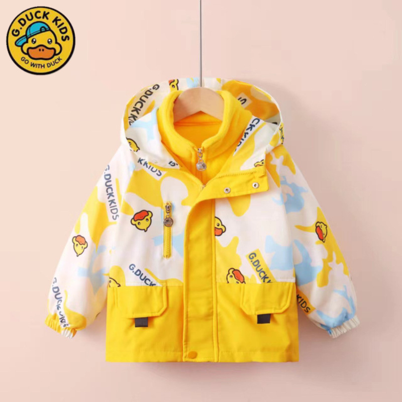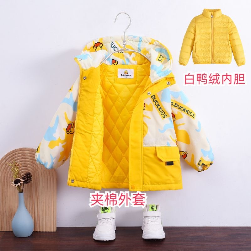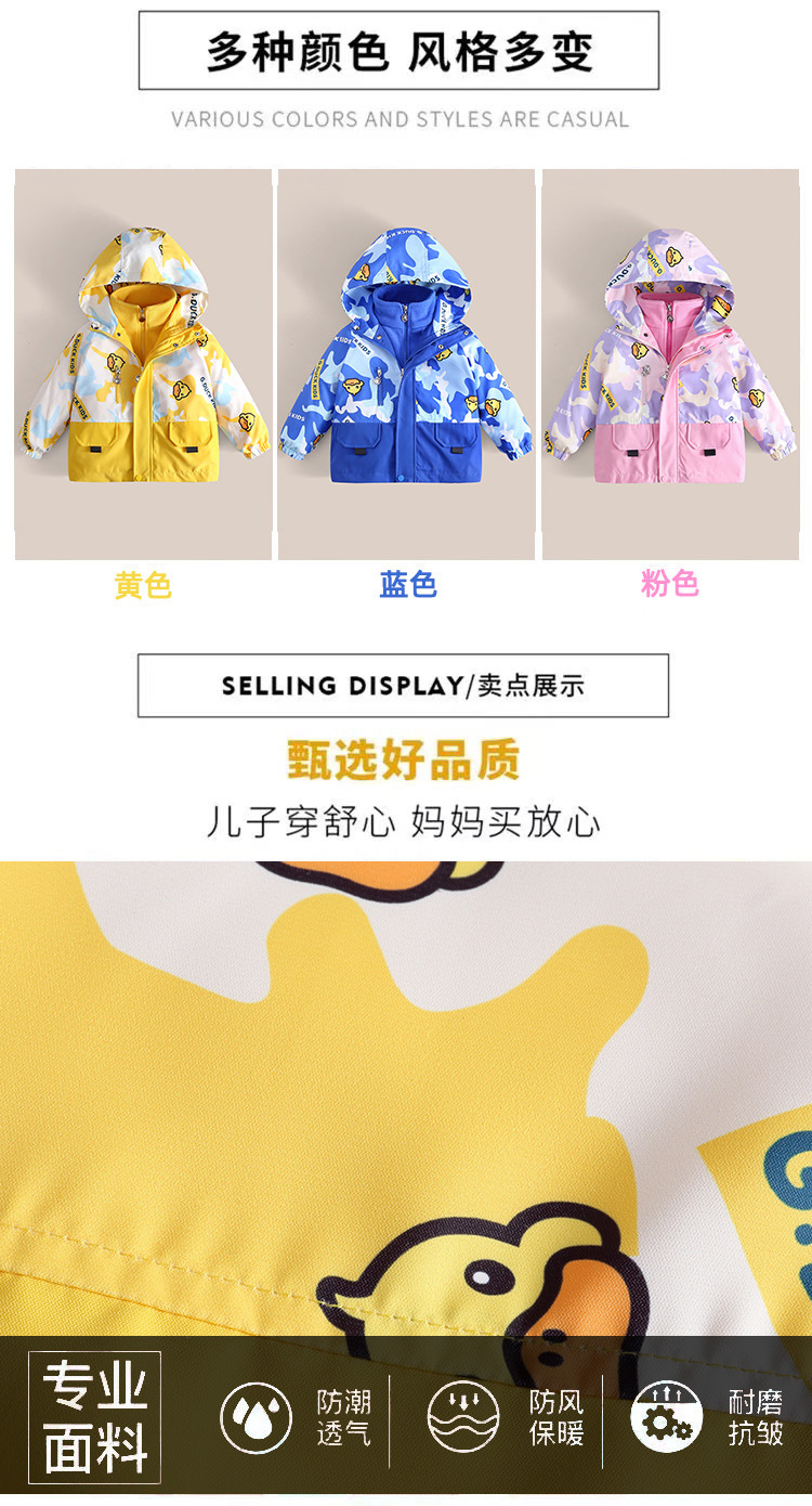 작은 노란색 오리 어린이 코트 새로운 3-in-one 정장 소년과 소녀 봄, 가을 아동 의류 아기 유치원스토어 가기