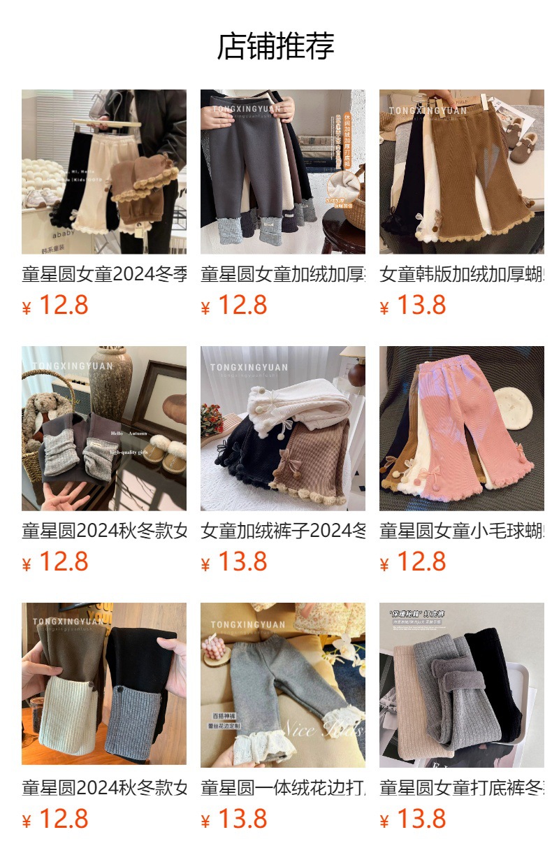 여아 양털 바지 가을과 겨울 따뜻한 새 스타일 어린이 한국식 바지 여자 아기 기모 면 바지 겨울 의류스토어 가기