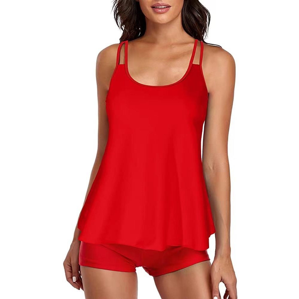 2023년 신상 유럽 및 미국 스타일 단색 수영복, 스플릿 스커트형 사각 비키니, 아마존 보수적인 수영복, 재고 있음