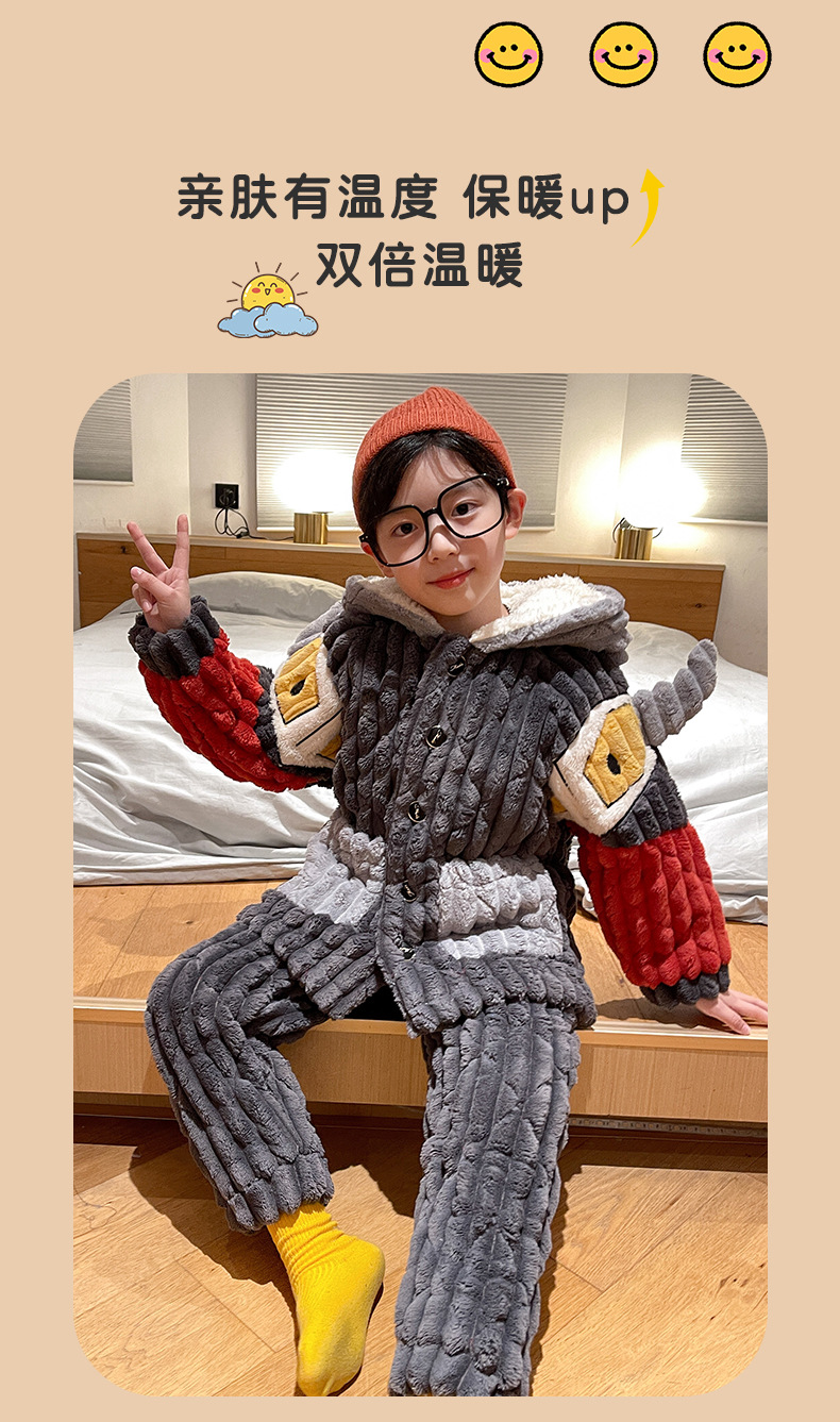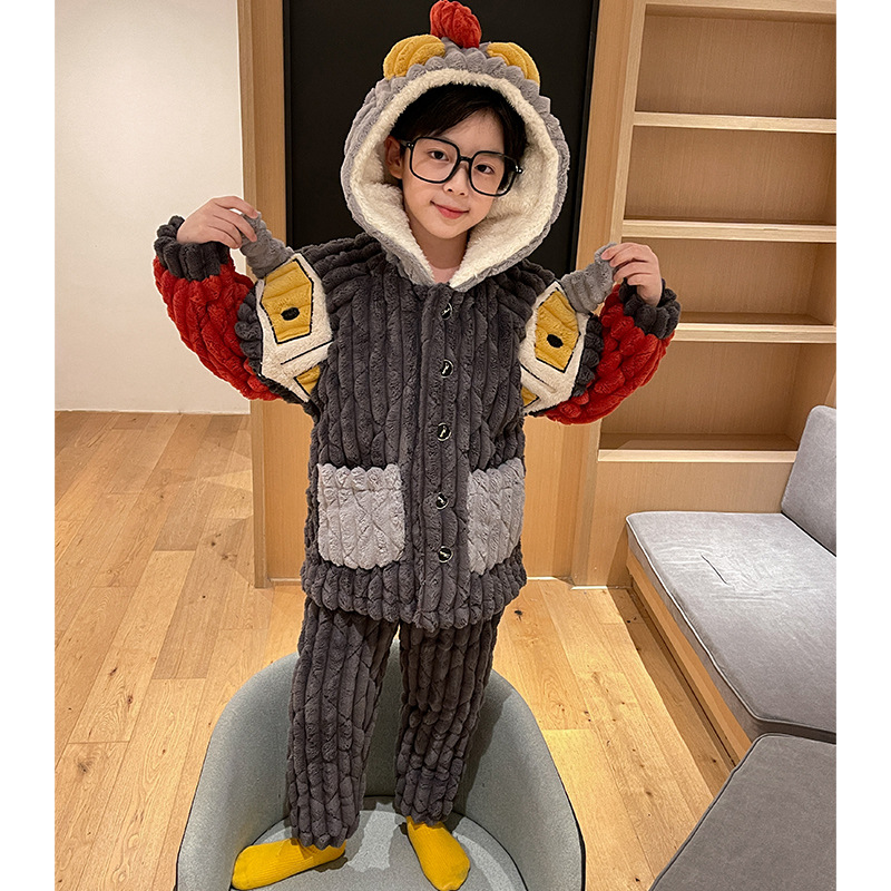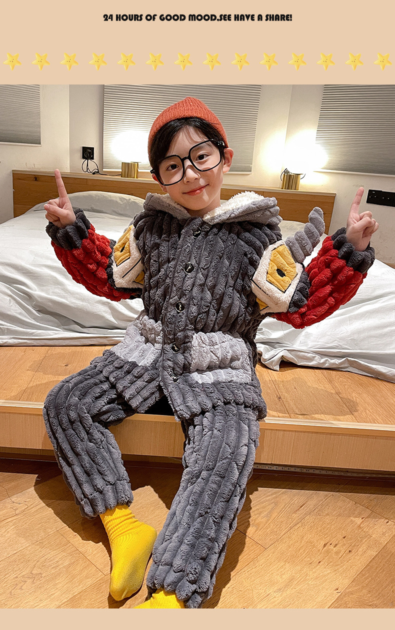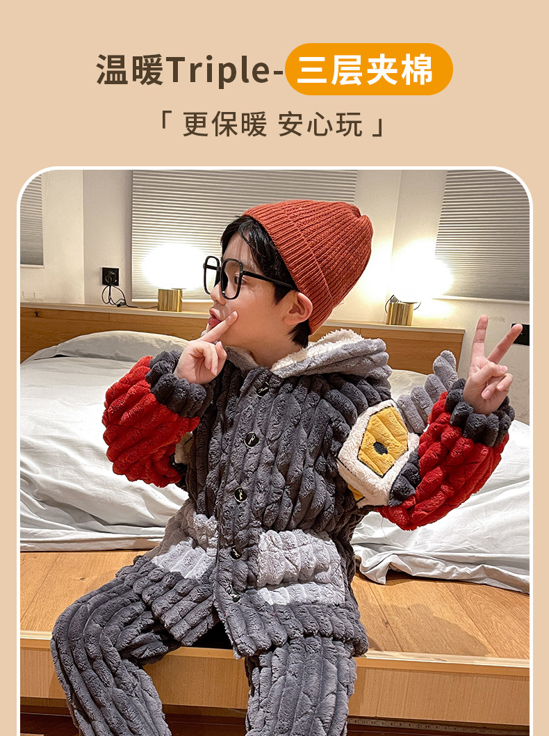 어린이 잠옷 소년의 겨울 플란넬은 3 층 퀼트 소년의 가을과 겨울 산호 양털 홈웨어를 두껍게 기모.