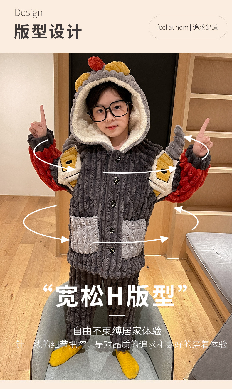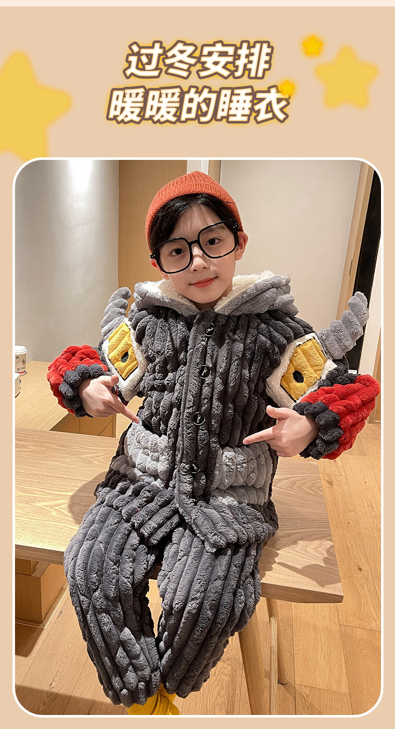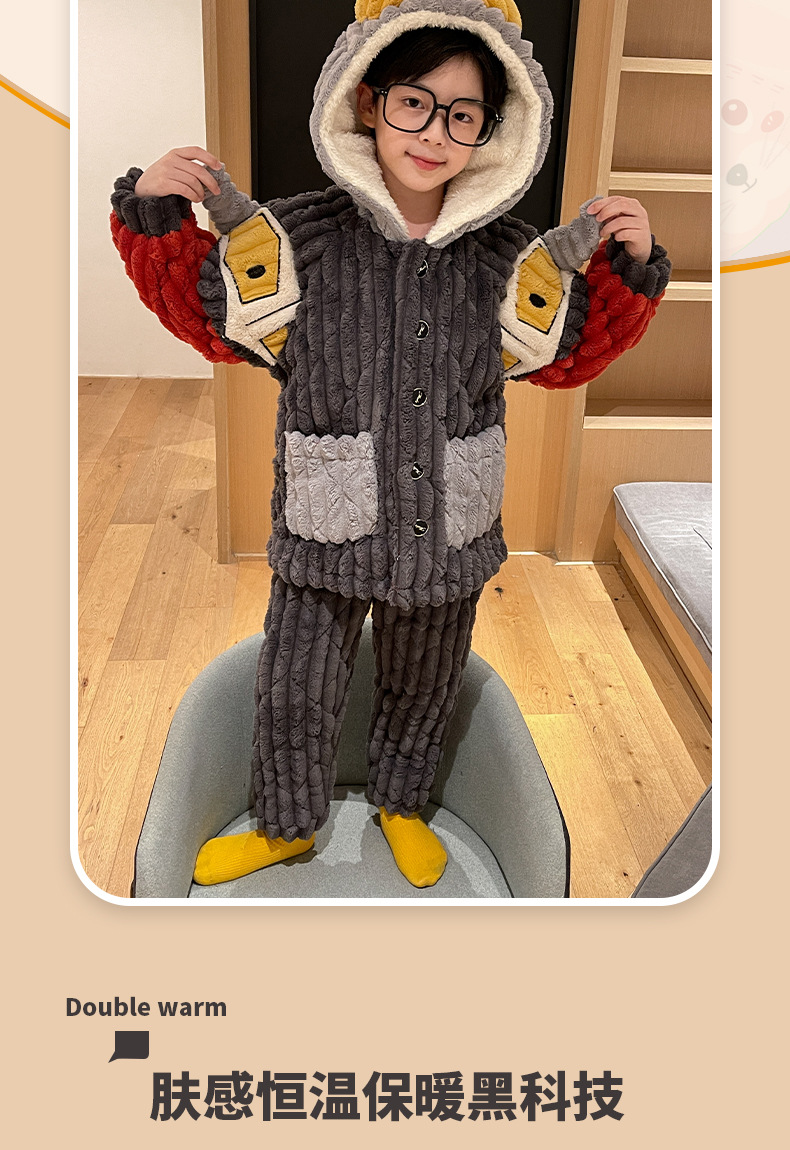 어린이 잠옷 소년의 겨울 플란넬은 3 층 퀼트 소년의 가을과 겨울 산호 양털 홈웨어를 두껍게 기모.