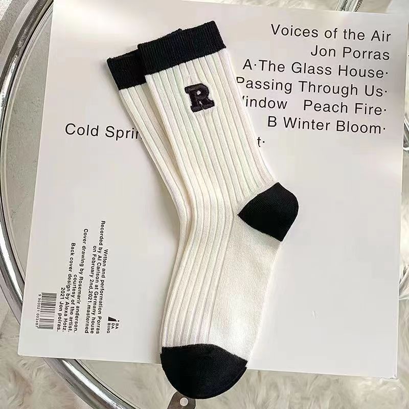 양말 여성용 중간 길이 양말 봄과 가을 스타킹 스포츠 편지 양말 여학생 스택 양말 모든 일치 일본 유행 양말스토어 가기