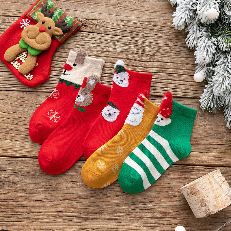 어린이 크리스마스 양말 가을 새해 양말 소년과 소녀 양말 만화 면 양말 아기 빨간 크리스마스 선물 미드 튜브 양말