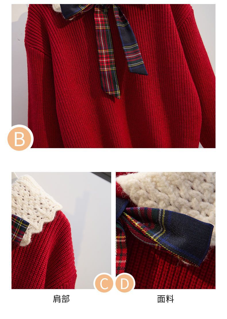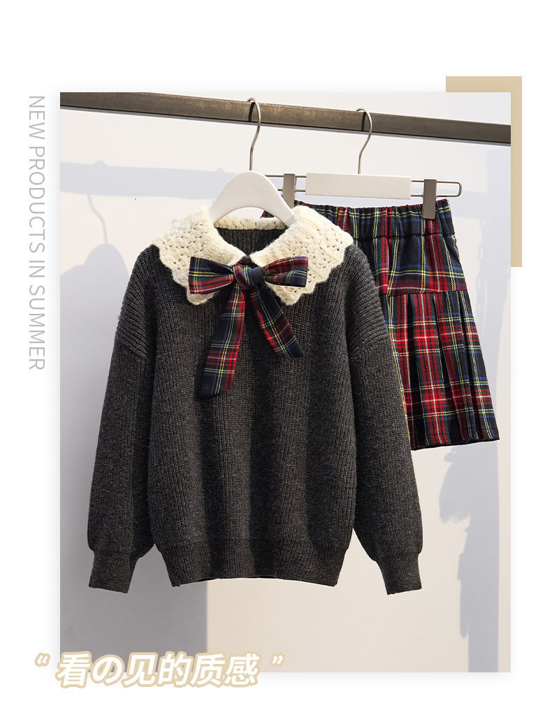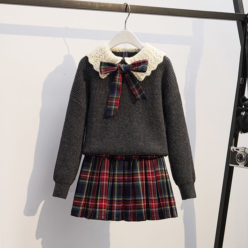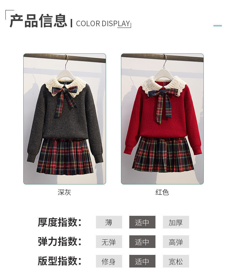 여자 니트 풀오버 스웨터 투피스 세트 어린이 가을과 겨울 새로운 스타일 학업 스타일 jk 세트 주름 치마 레드스토어 가기