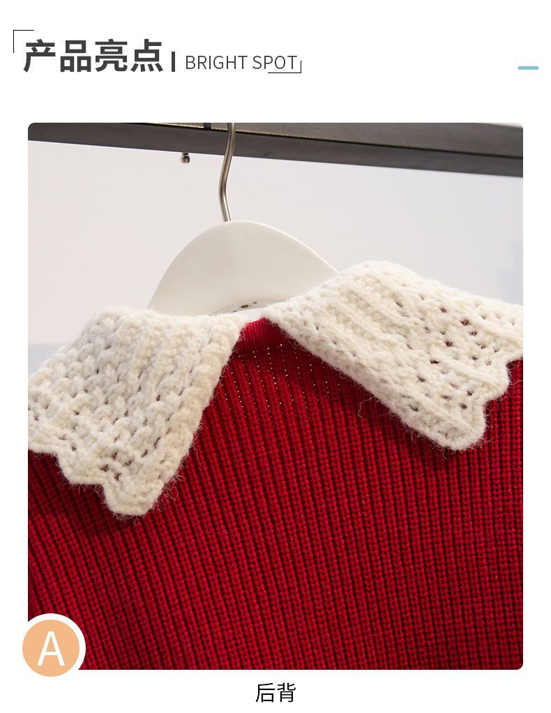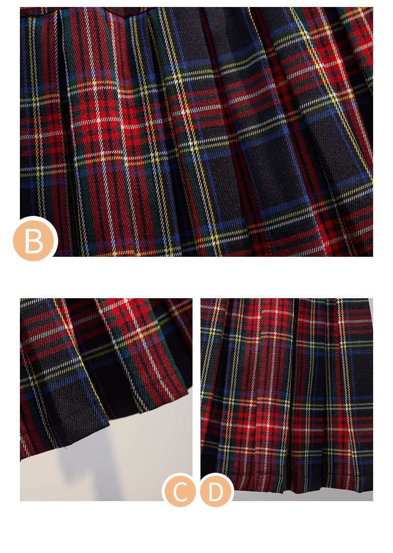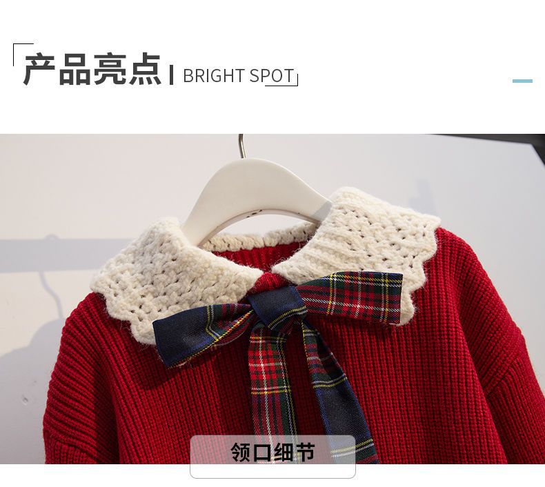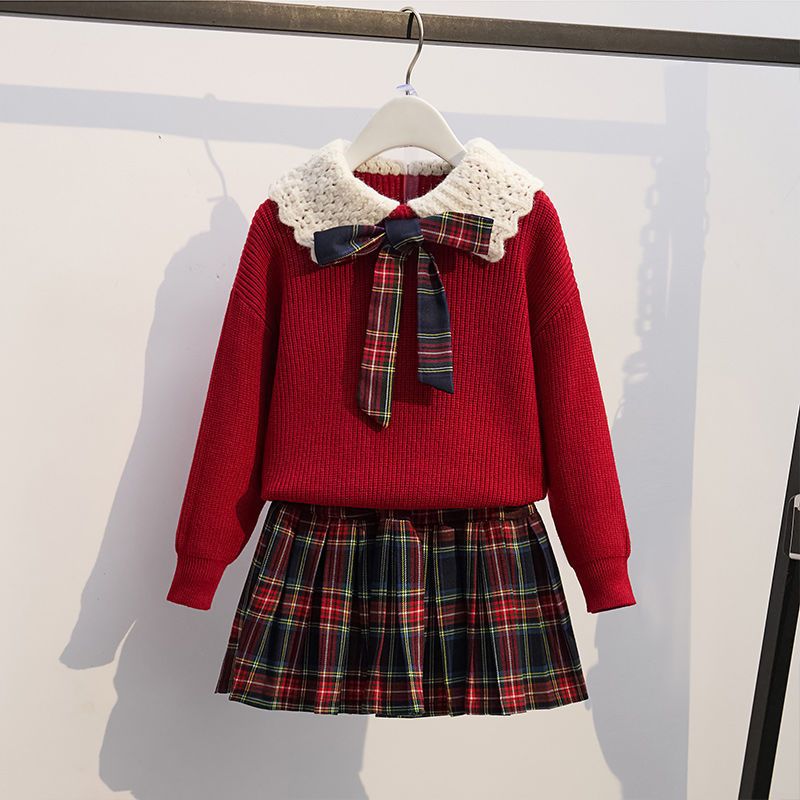 여자 니트 풀오버 스웨터 투피스 세트 어린이 가을과 겨울 새로운 스타일 학업 스타일 jk 세트 주름 치마 레드