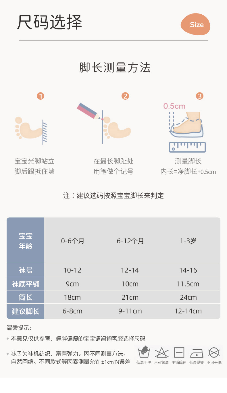 • 6-12 개월 양말 12-14/발 길이 9-11cm