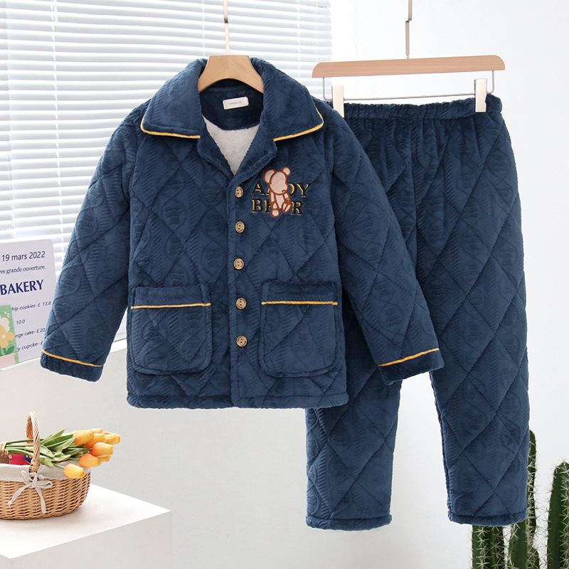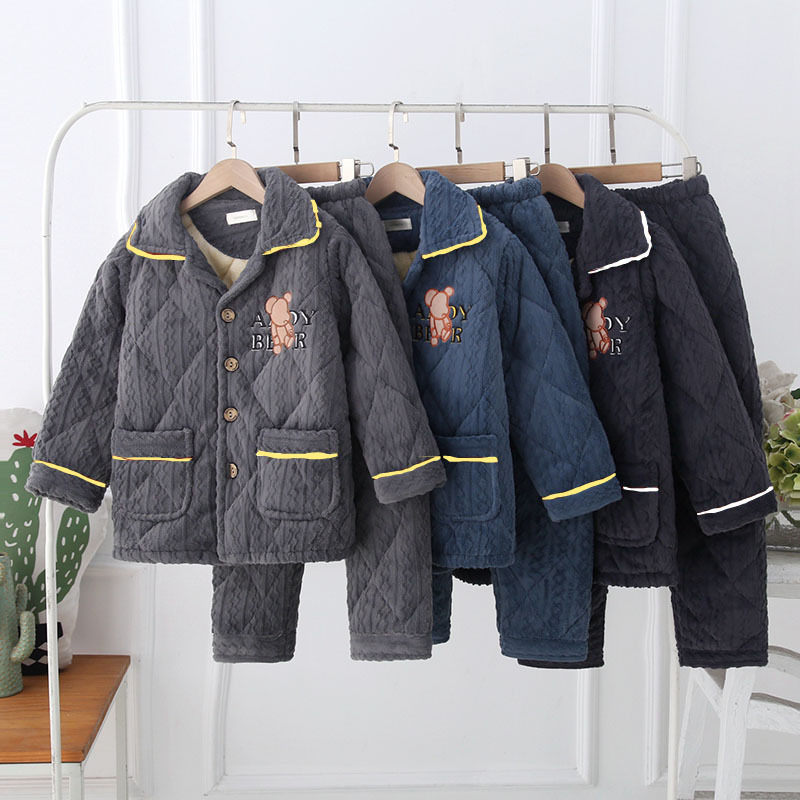 어린이 면 잠옷 3 층 두꺼운 겨울 남자의 중간 및 큰 아이들의 정상 세트 귀여운 만화 가정 옷 2 종 세트