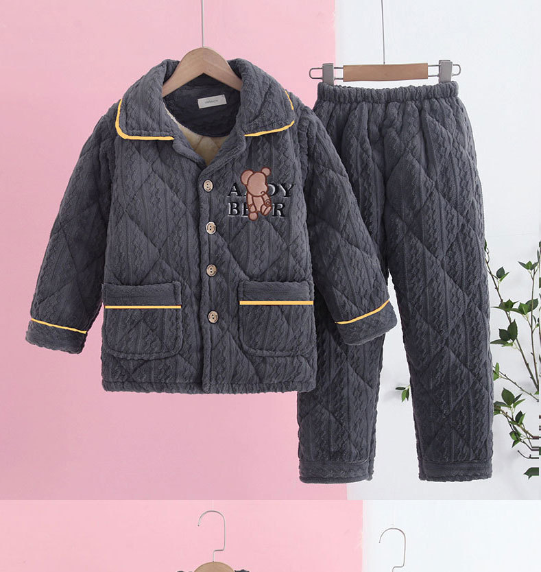 어린이 면 잠옷 3 층 두꺼운 겨울 남자의 중간 및 큰 아이들의 정상 세트 귀여운 만화 가정 옷 2 종 세트스토어 가기