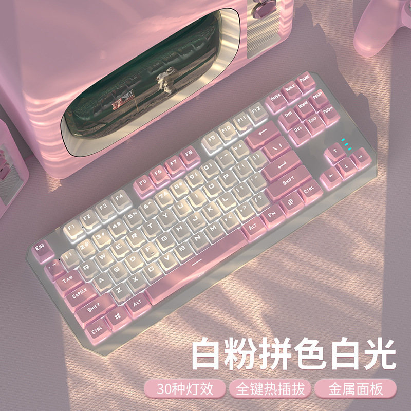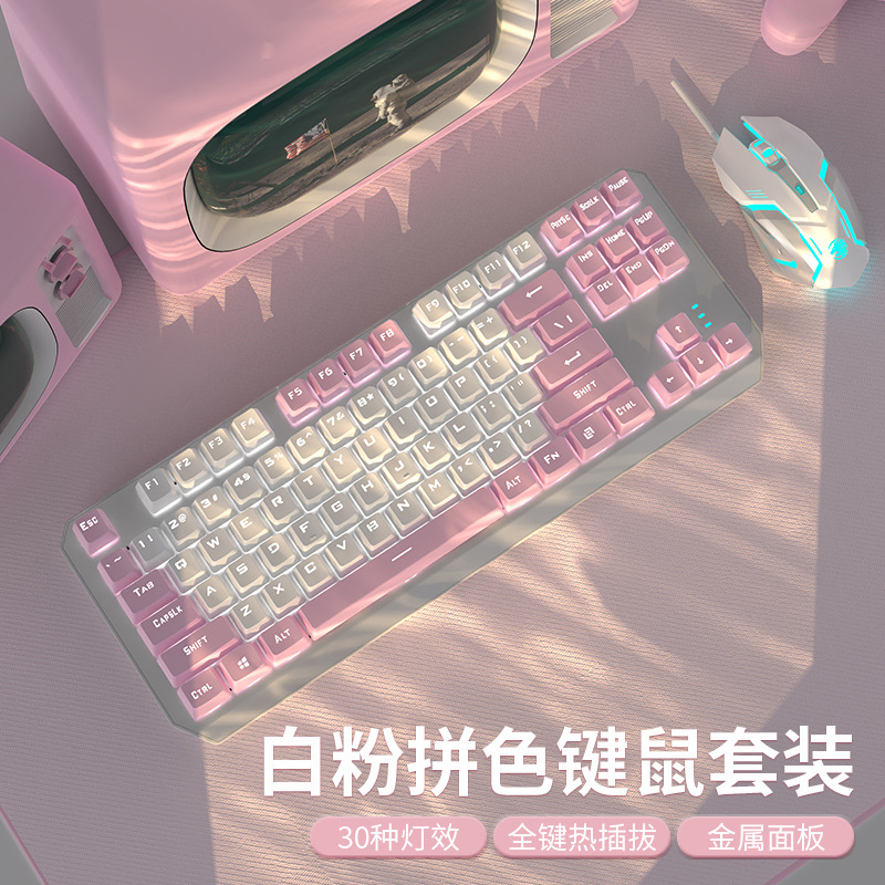• 핑크 화이트 화이트 라이트 87 키 + 게임 매크로 마우스