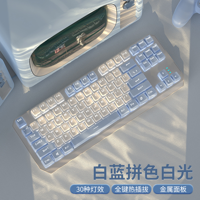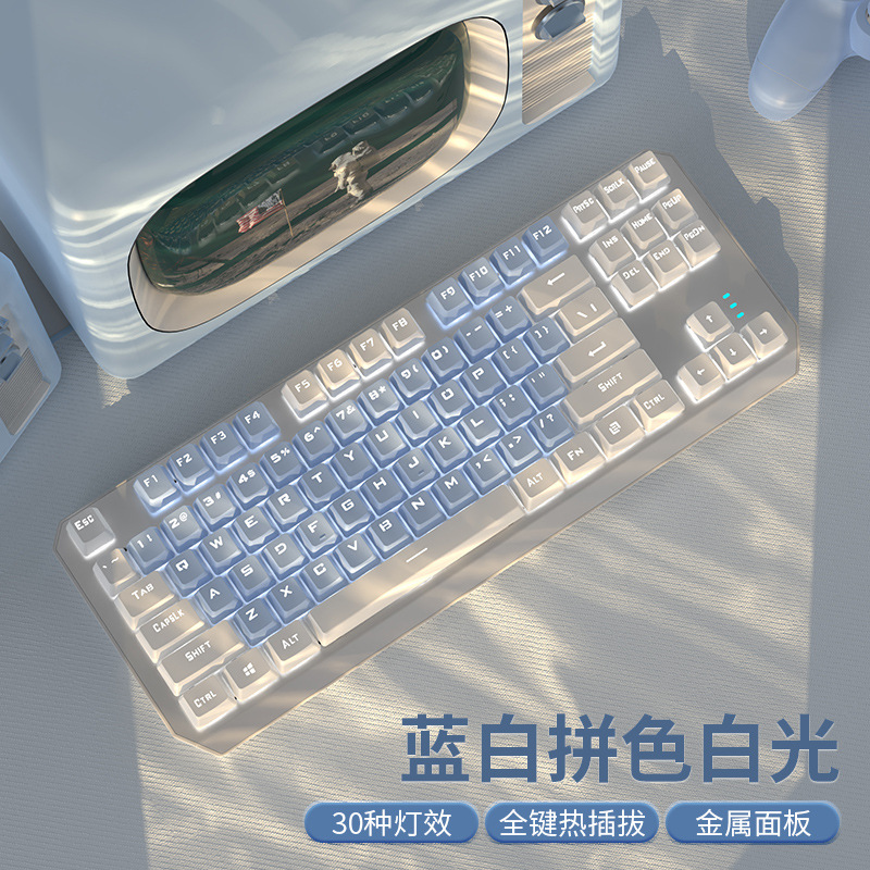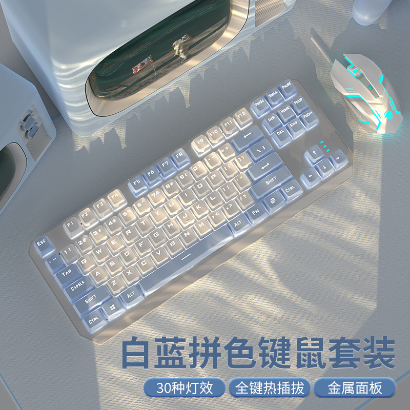 • 화이트 블루-화이트 라이트 87 키 + 게임 매크로 마우스