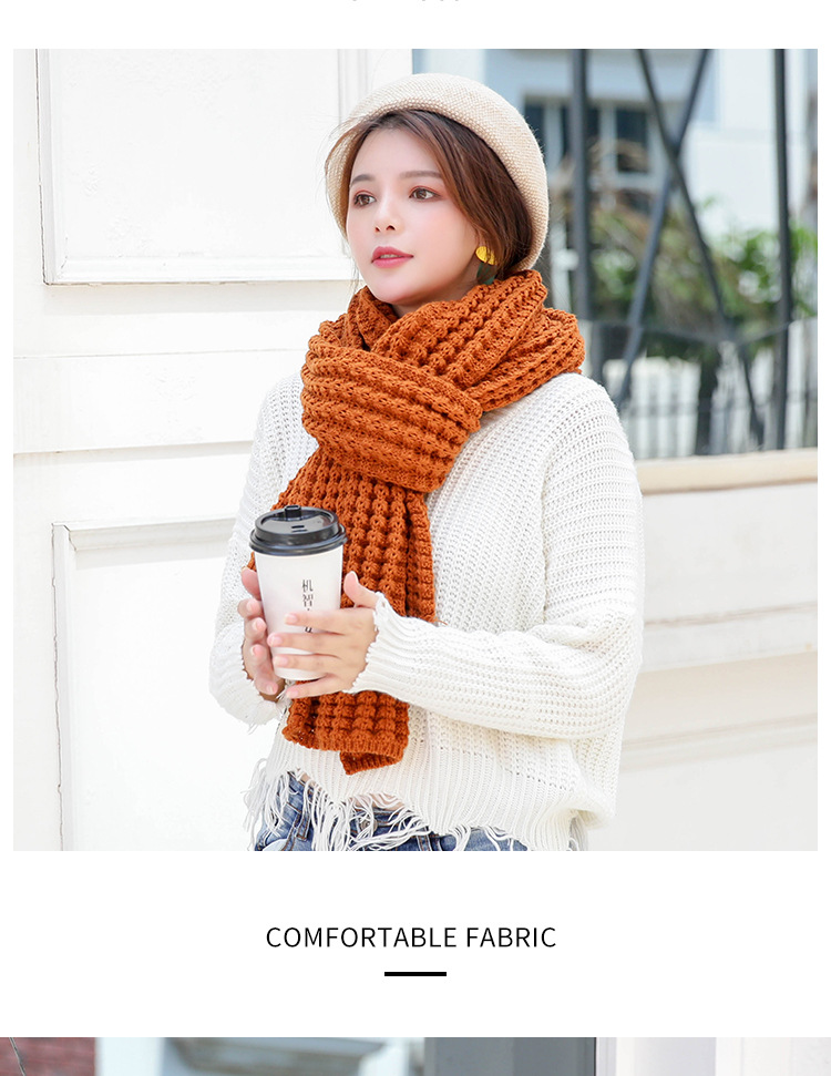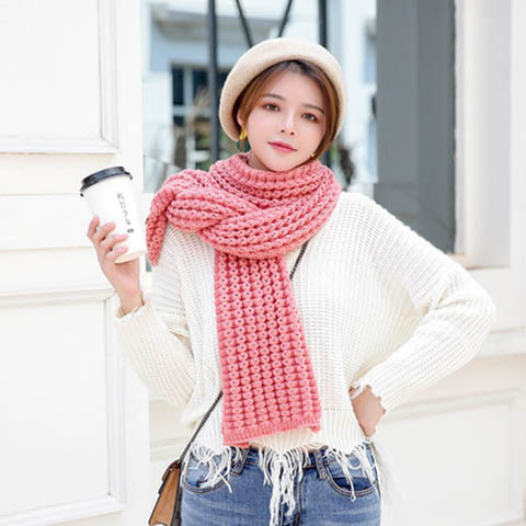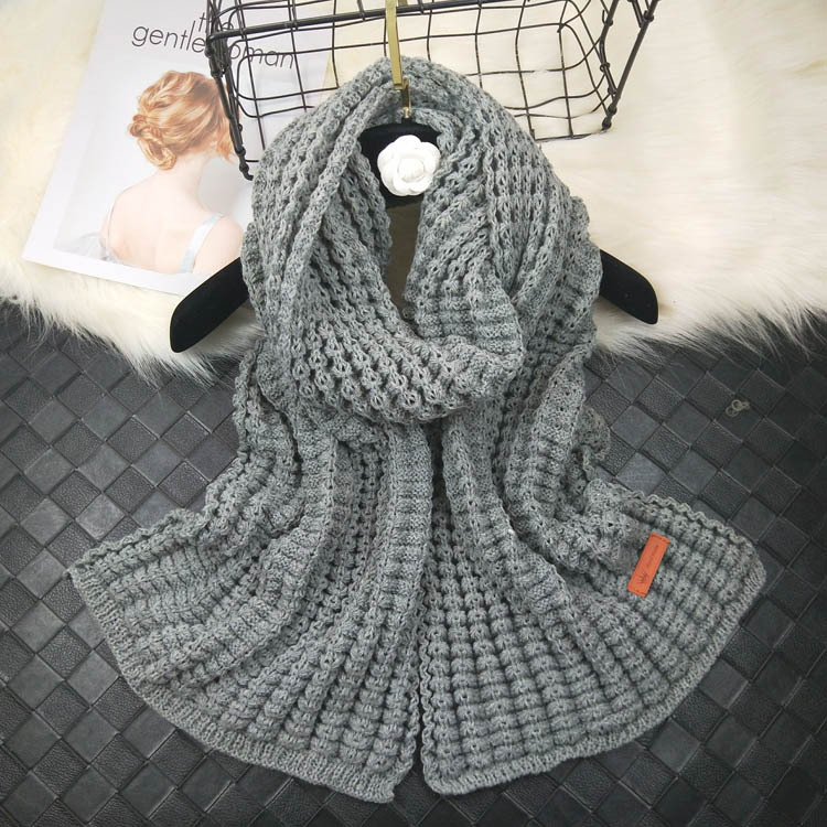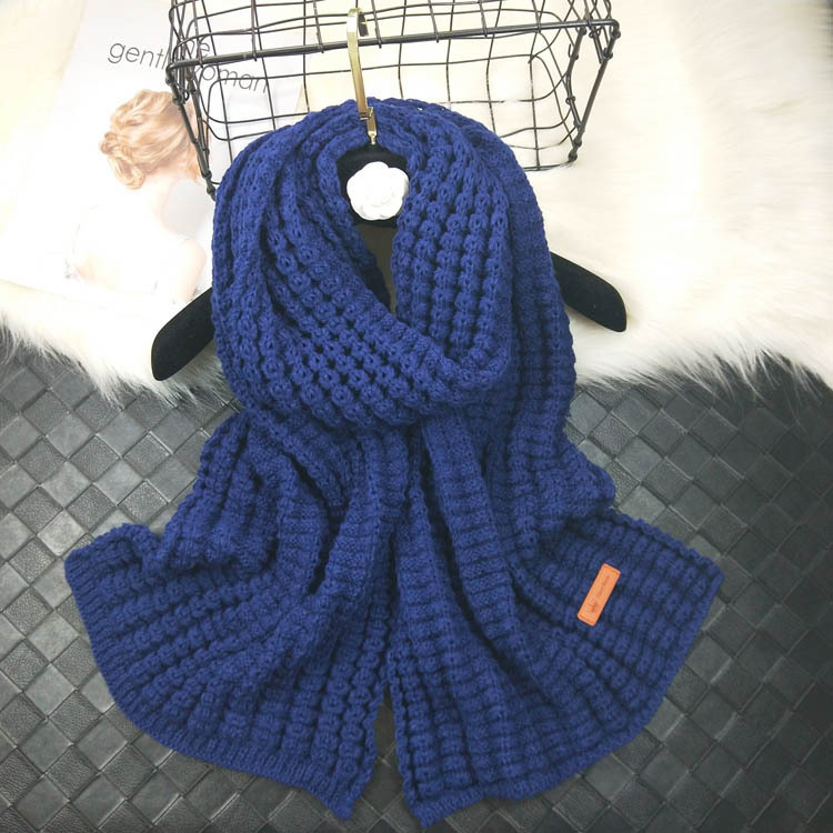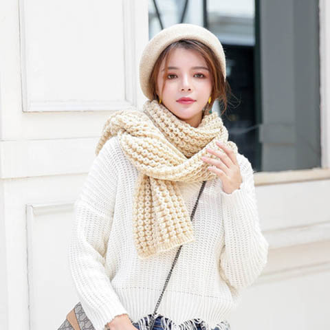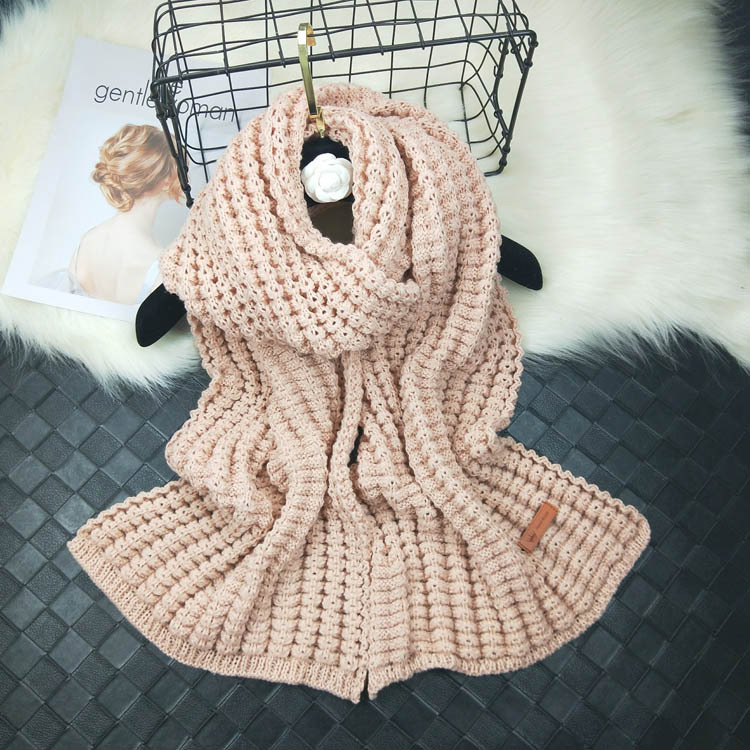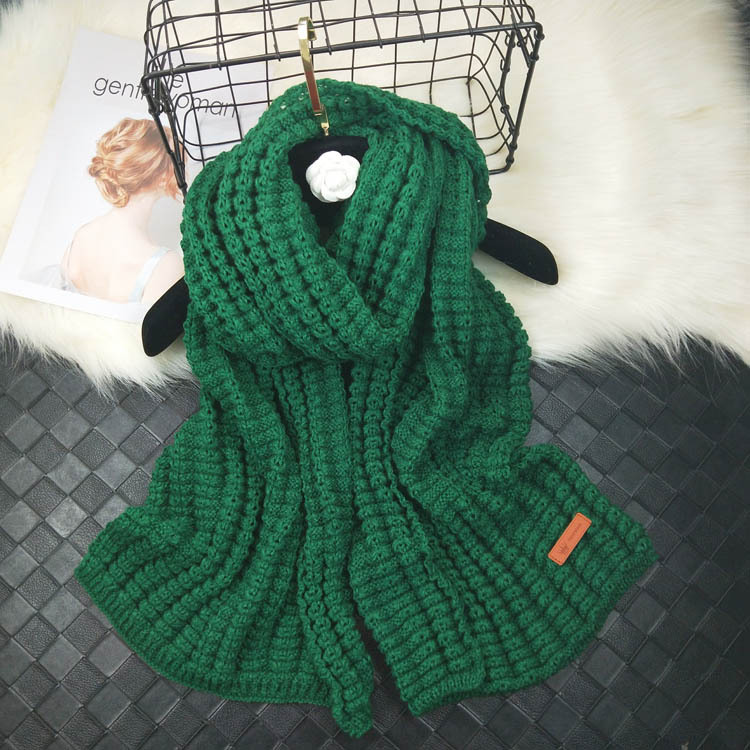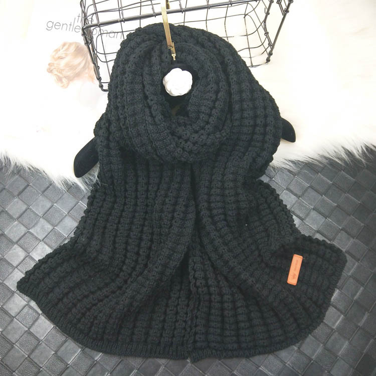 한국어 버전 여성용 다목적 솔리드 컬러 스카프 겨울 모직 니트 두꺼운 따뜻한 확장 학생 스카프 귀여운 커플 스타일