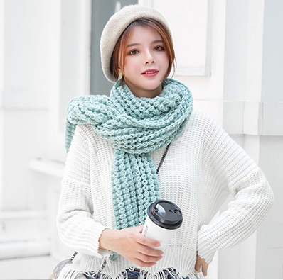 한국어 버전 여성용 다목적 솔리드 컬러 스카프 겨울 모직 니트 두꺼운 따뜻한 확장 학생 스카프 귀여운 커플 스타일스토어 가기