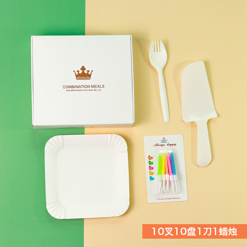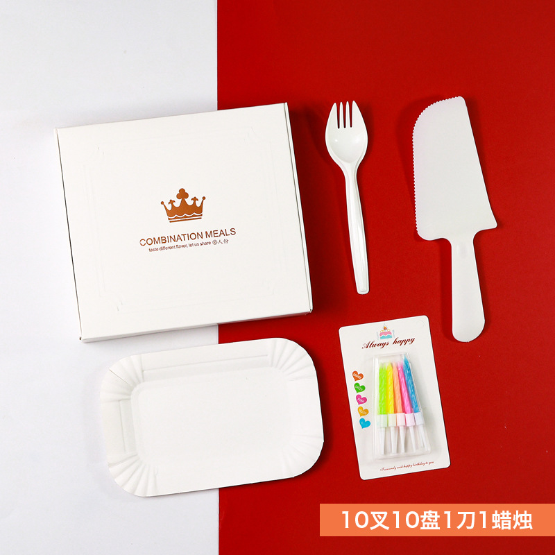 케이크 칼과 포크 일회용 접시 포크 캔들 종이 접시 식기 상자 생일 접시 상급 3 대 1 세트 4 조합스토어 가기