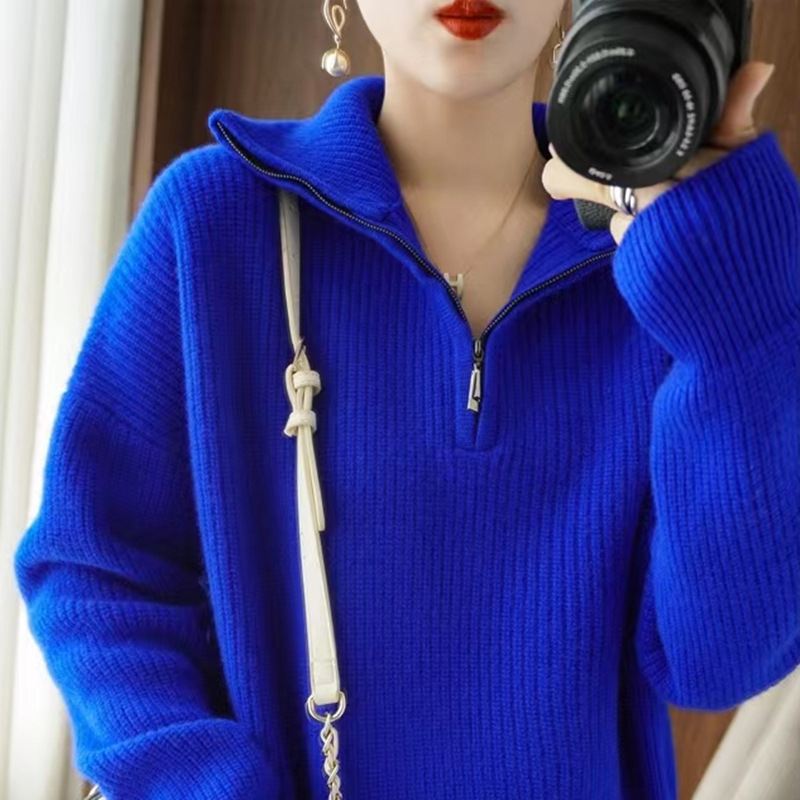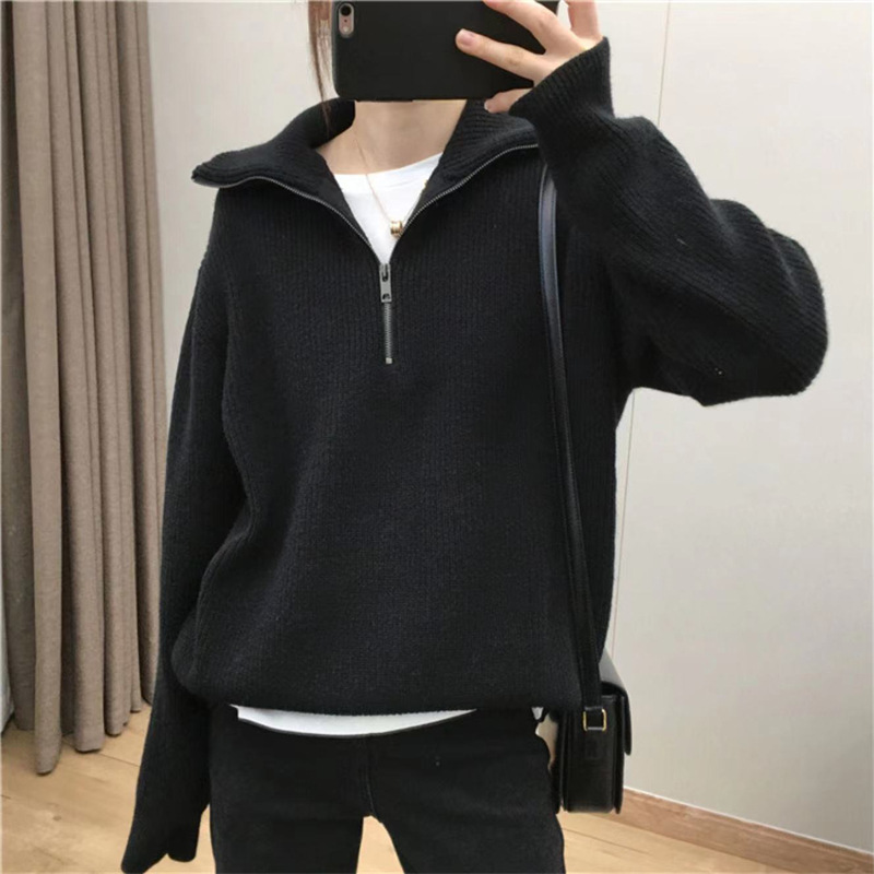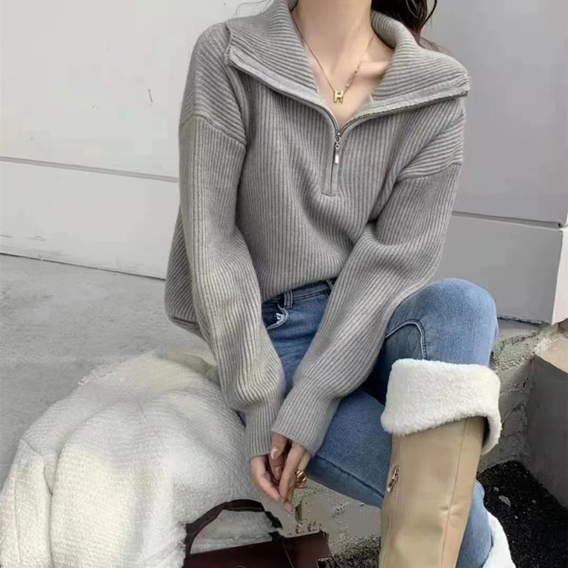 2025년 신상 가을 겨울 한국 스타일 루즈핏 지퍼 라펠 무지 스웨터 여성용 루즈핏 풀오버 니트 자켓스토어 가기