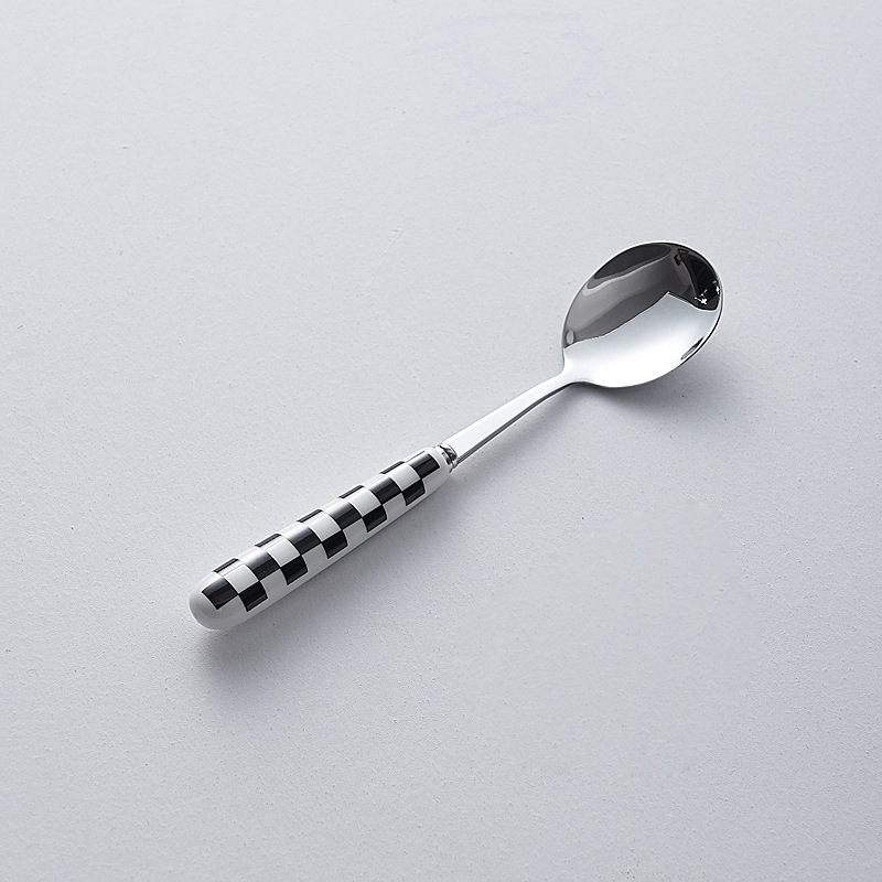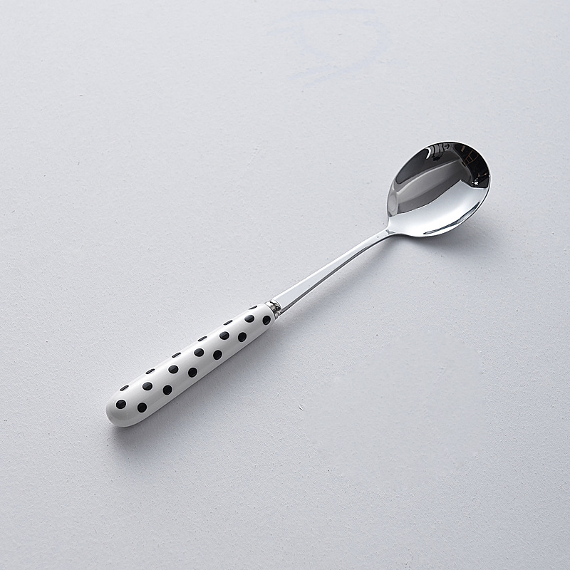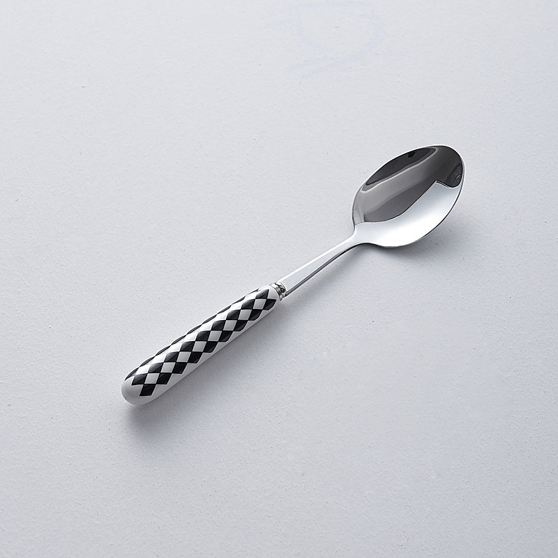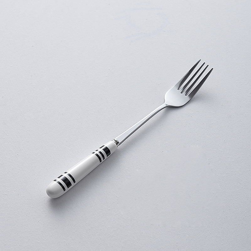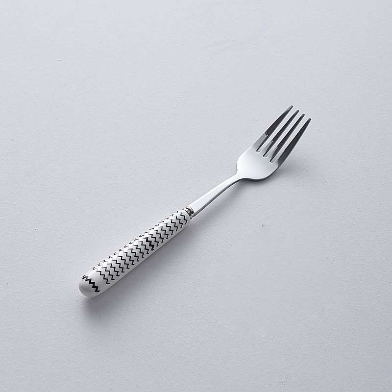 심플한 세라믹 핸들 나이프와 포크 스푼 웨이브 포인트 디자인 스테인레스 식기 크리에이티브 고부가가치 스테이크 나이프와 포크 도매스토어 가기