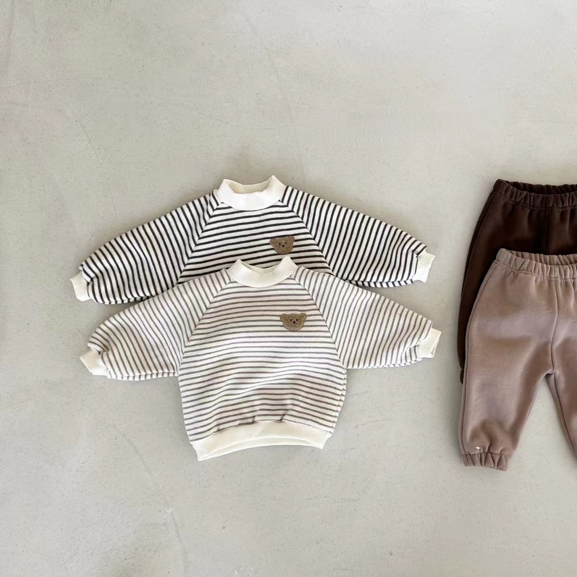 한국 아동복 가을과 겨울 2024 남녀 아기 부드러운 줄무늬 스웨터 바지 캐주얼 세트스토어 가기