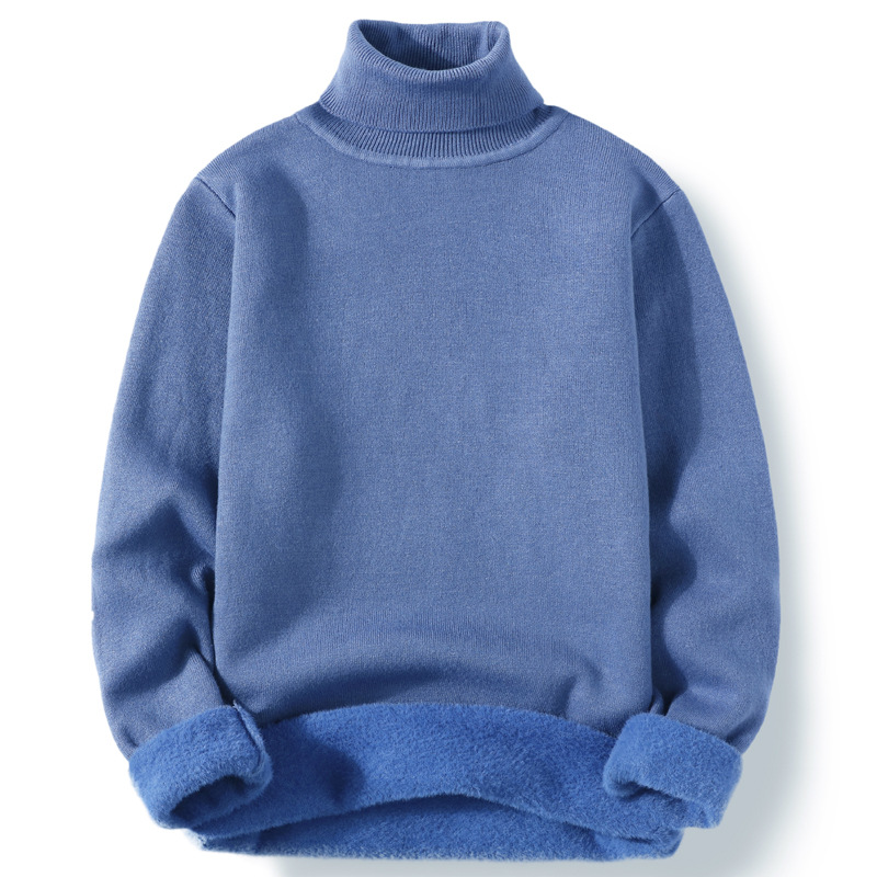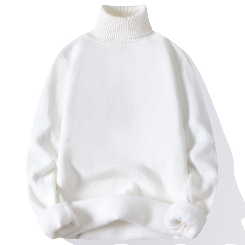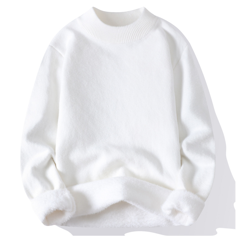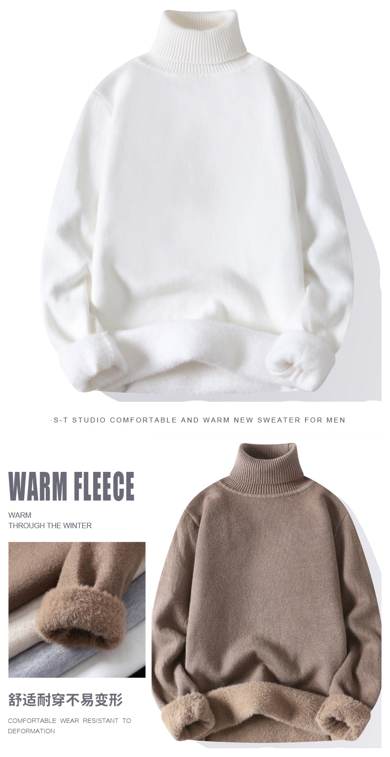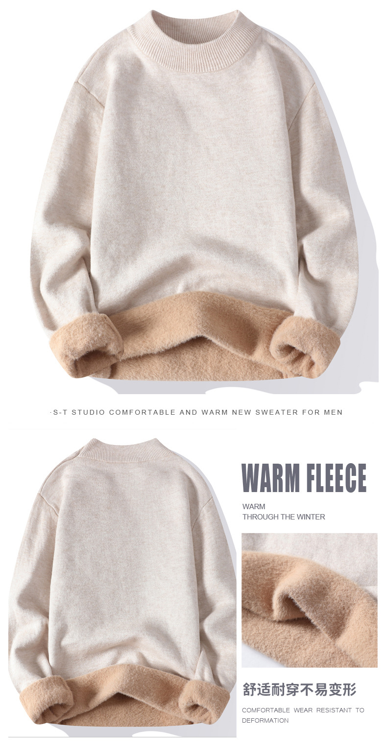 가을과 겨울 심플 트렌디 캐주얼 일본과 한국 미드 칼라 하이 칼라 솔리드 컬러 기모 두꺼운 원피스 벨벳베이스 니트 스웨터 남성용