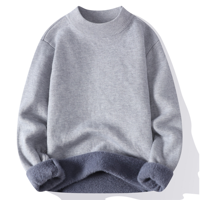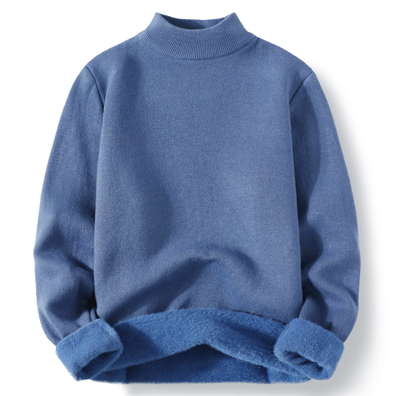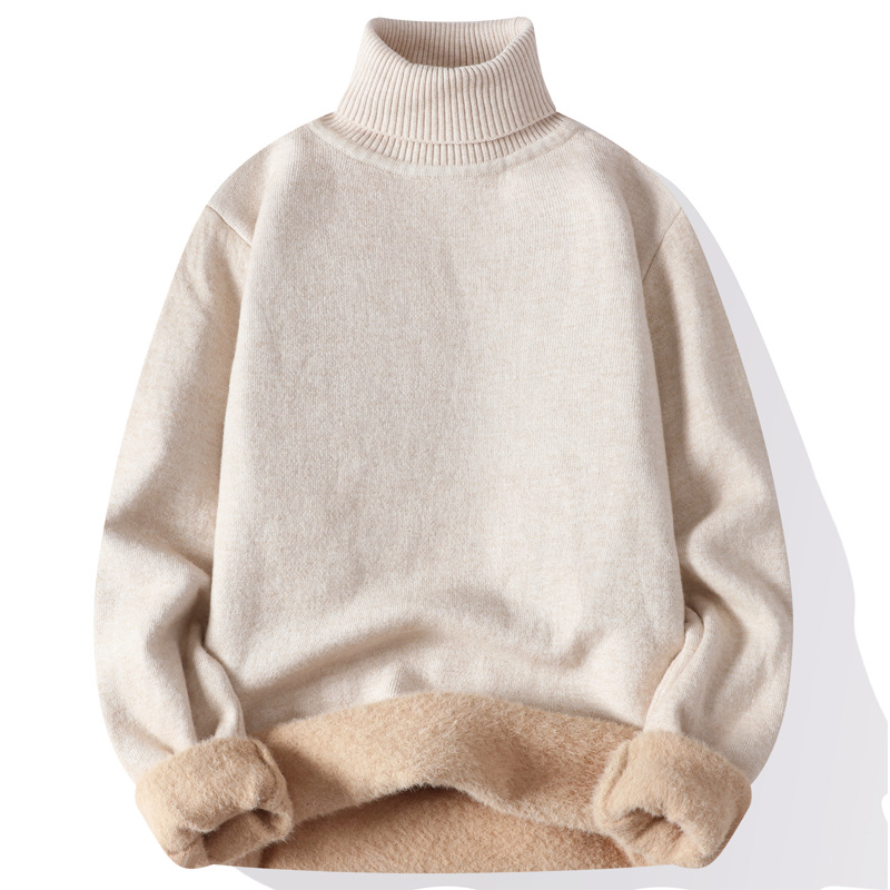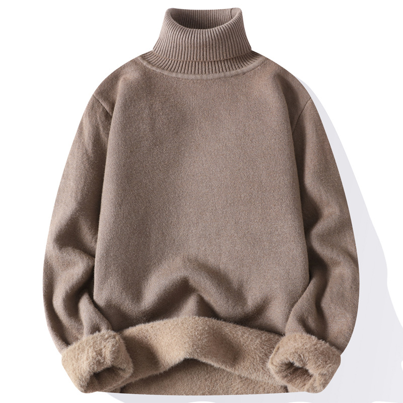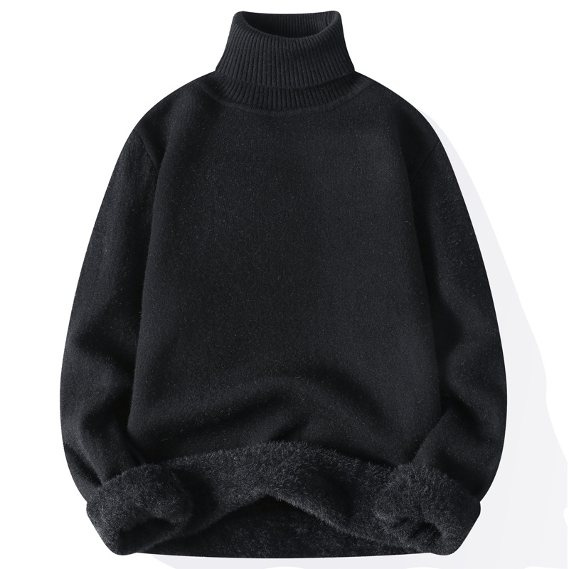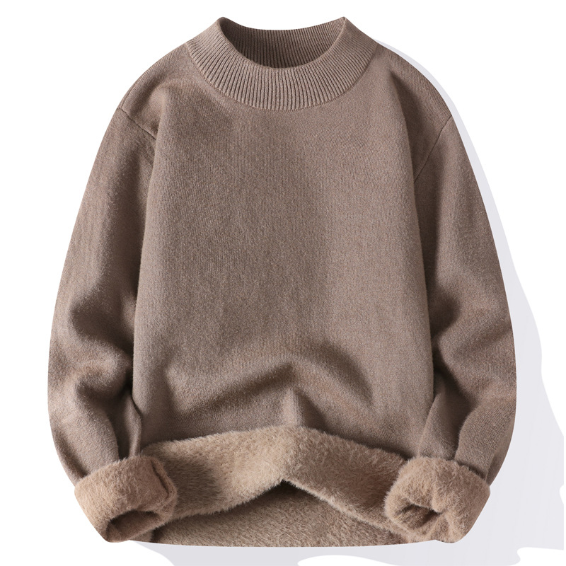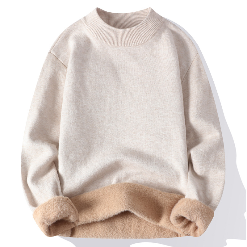 가을과 겨울 심플 트렌디 캐주얼 일본과 한국 미드 칼라 하이 칼라 솔리드 컬러 기모 두꺼운 원피스 벨벳베이스 니트 스웨터 남성용