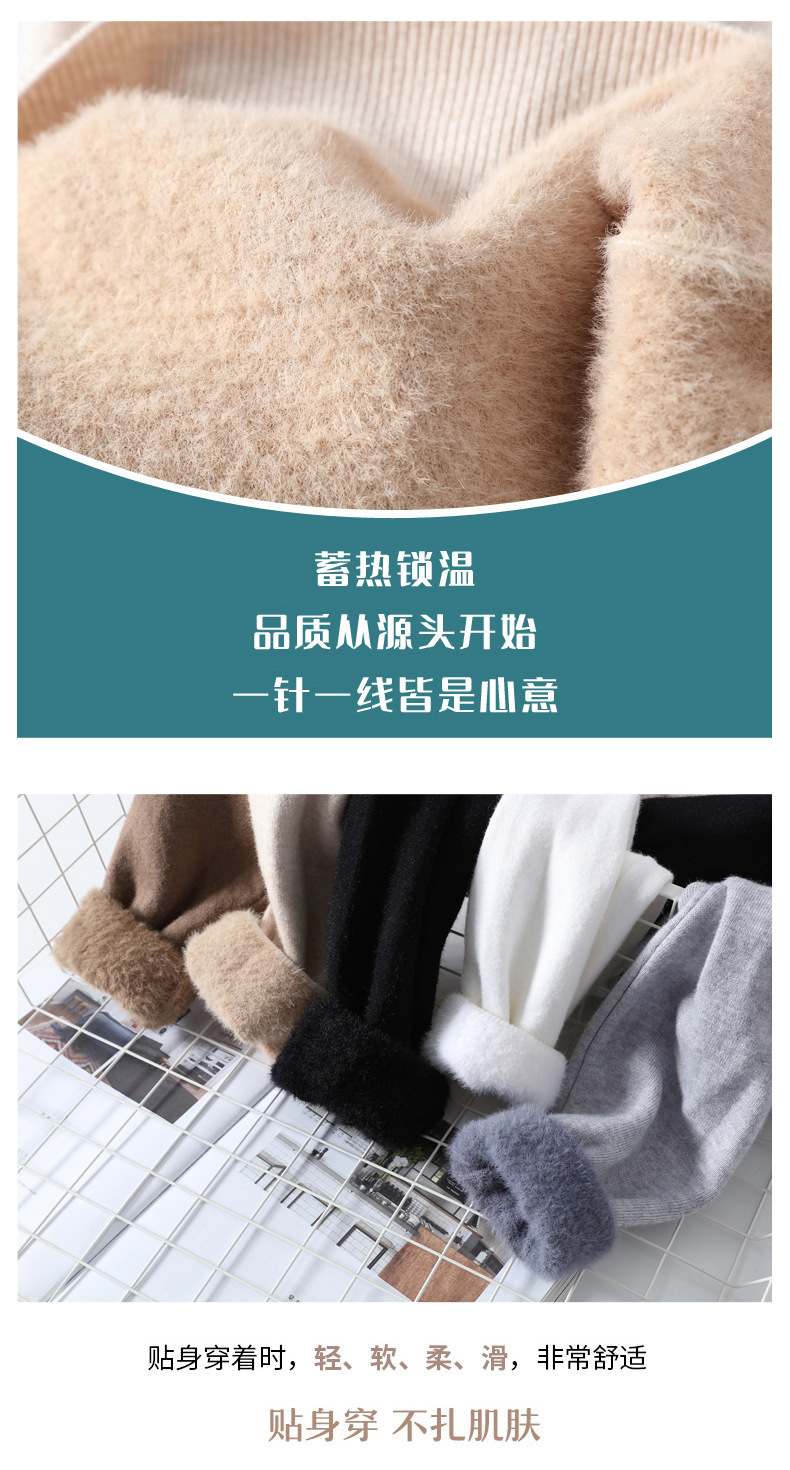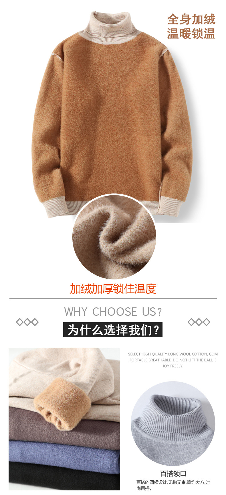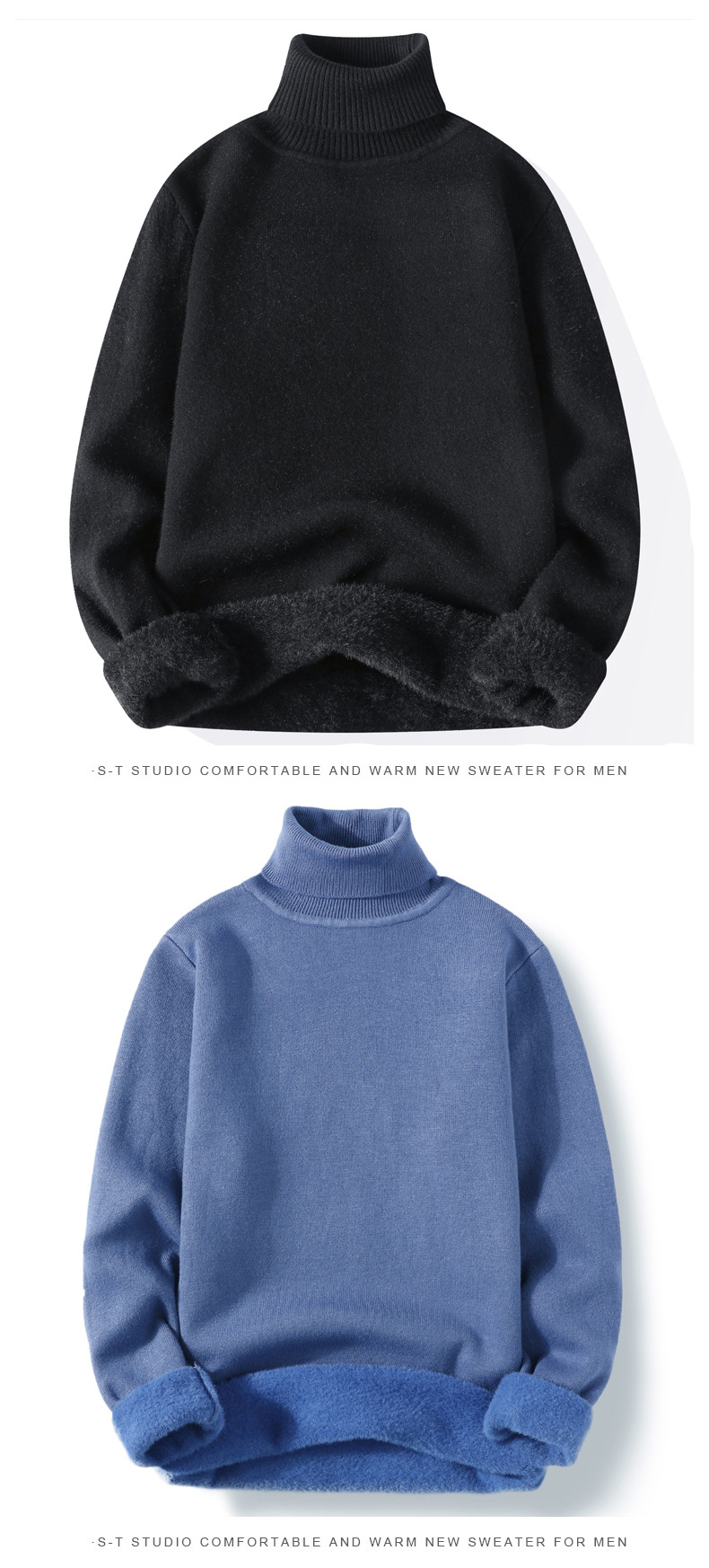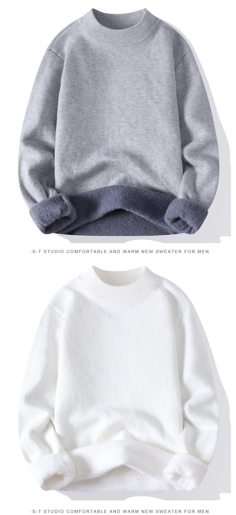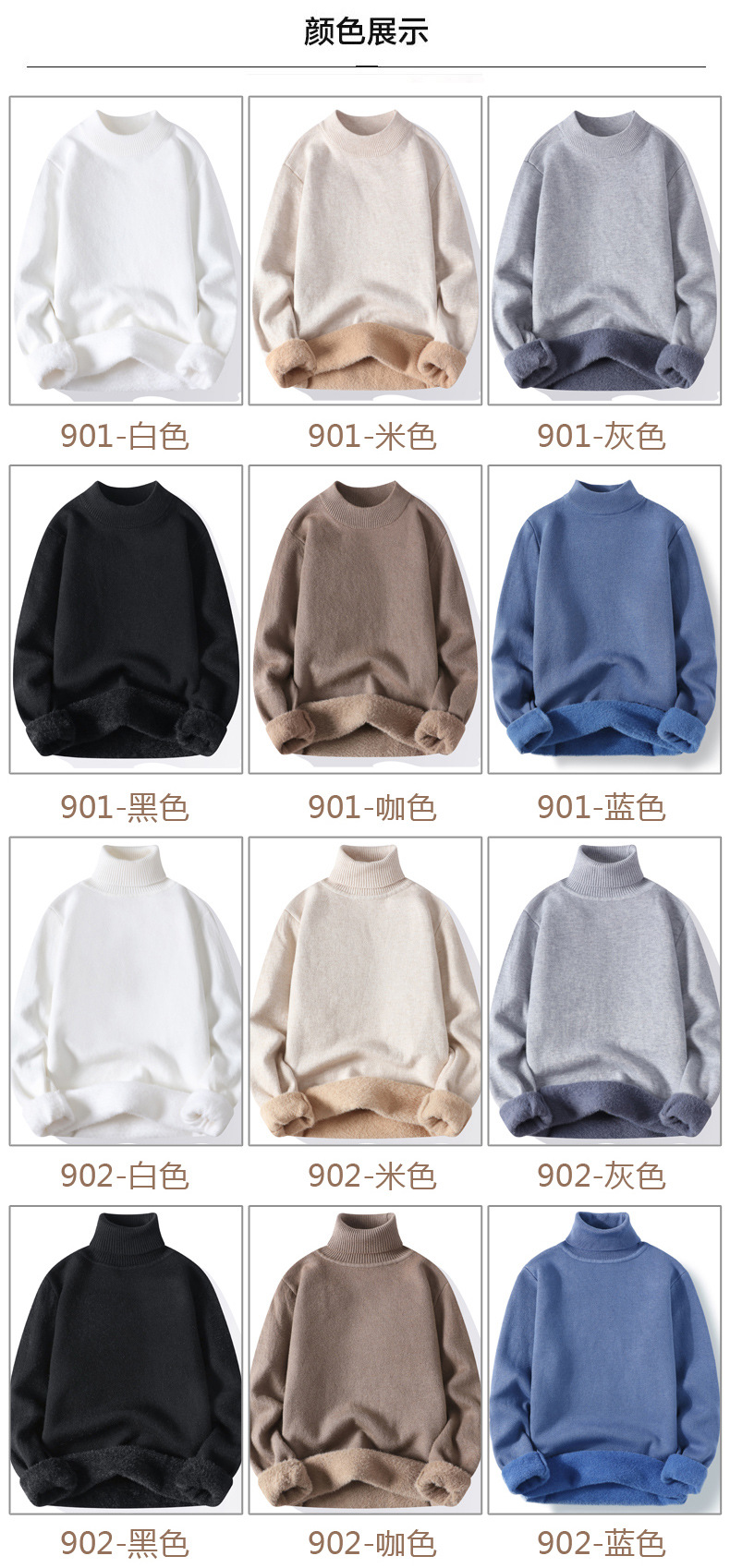 가을과 겨울 심플 트렌디 캐주얼 일본과 한국 미드 칼라 하이 칼라 솔리드 컬러 기모 두꺼운 원피스 벨벳베이스 니트 스웨터 남성용스토어 가기
