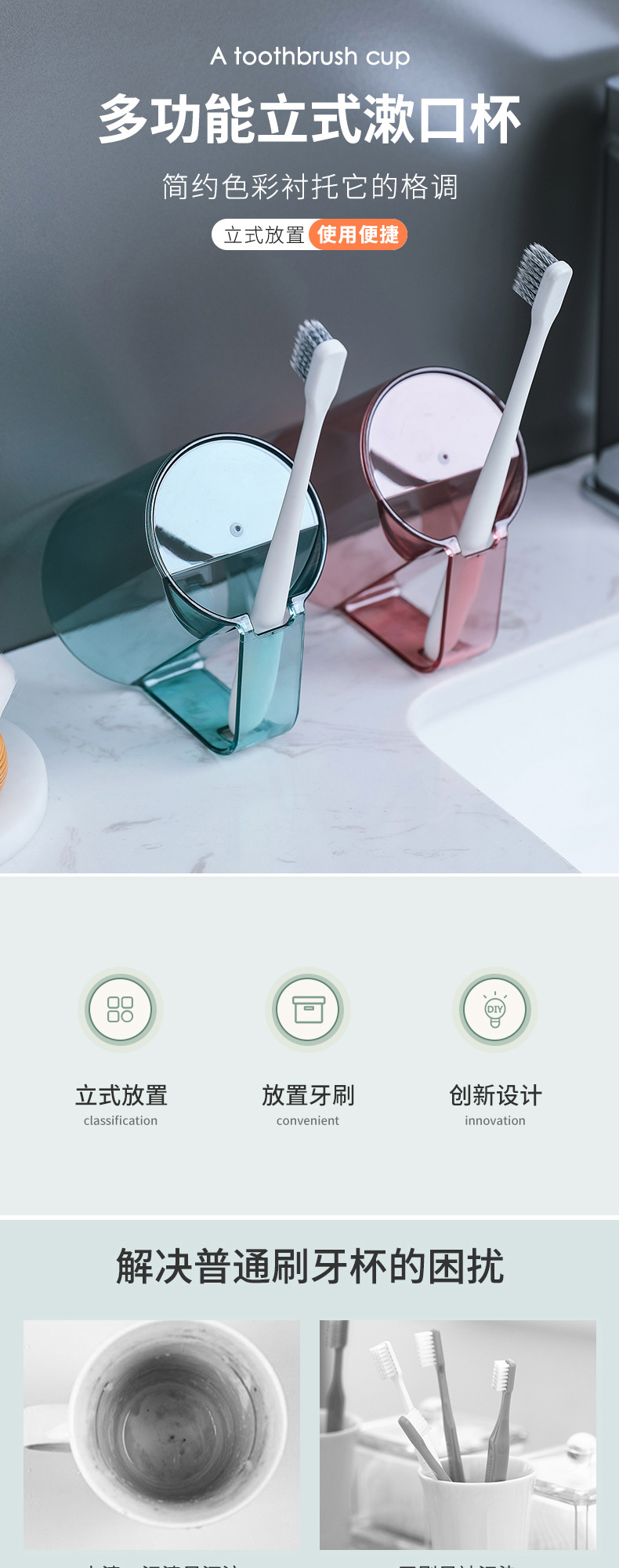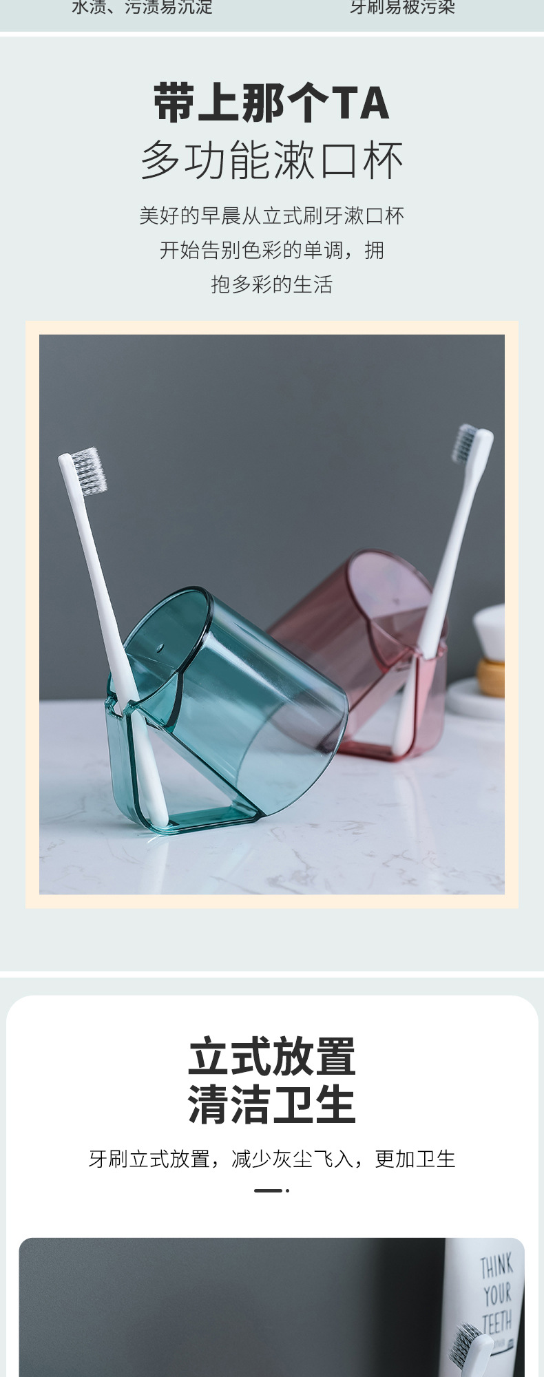 칫솔 브래킷이있는 구강 세척제 컵 커플 학생을위한 창조적 인 거꾸로 배수 컵 식수와 칫솔질 칫솔 가정용 치약스토어 가기