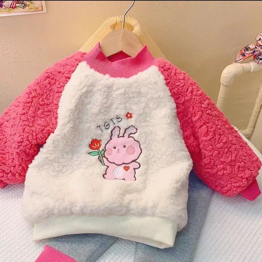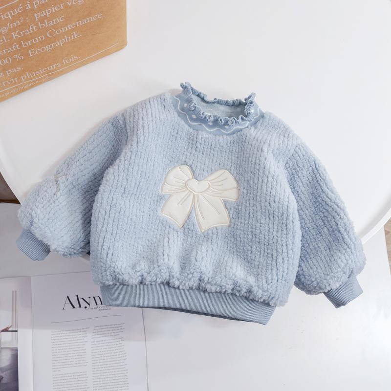 여아 기모 두꺼운 땀 2023 가을/겨울 새로운 한국 스타일 유행 풀오버 보우 어린이 재킷