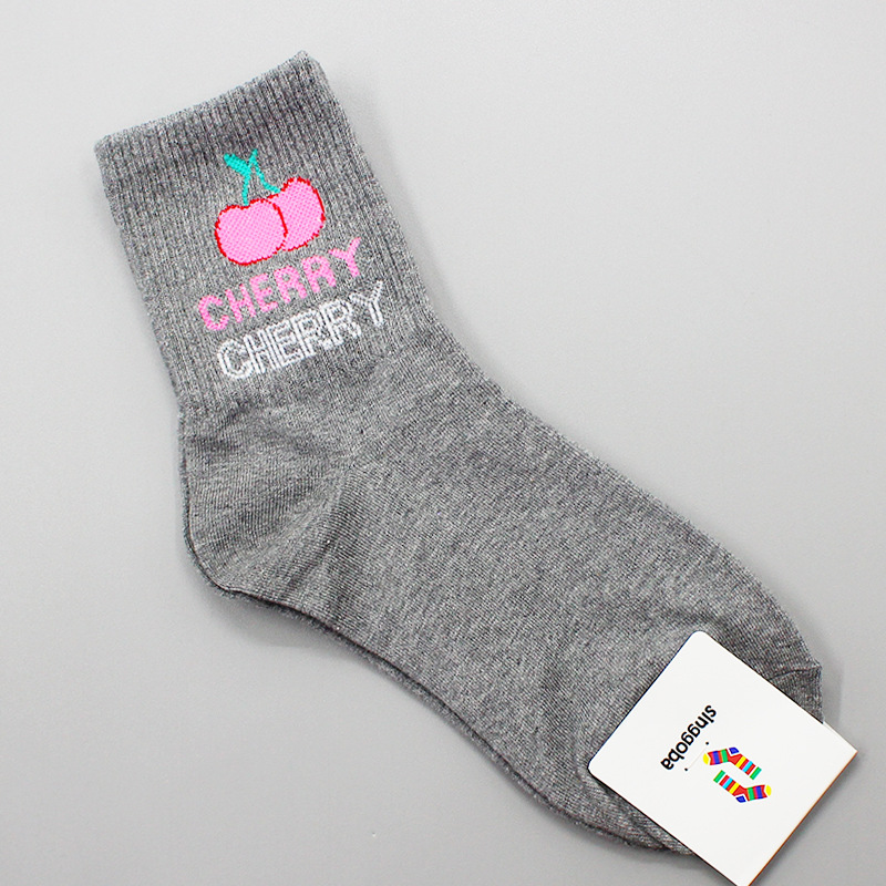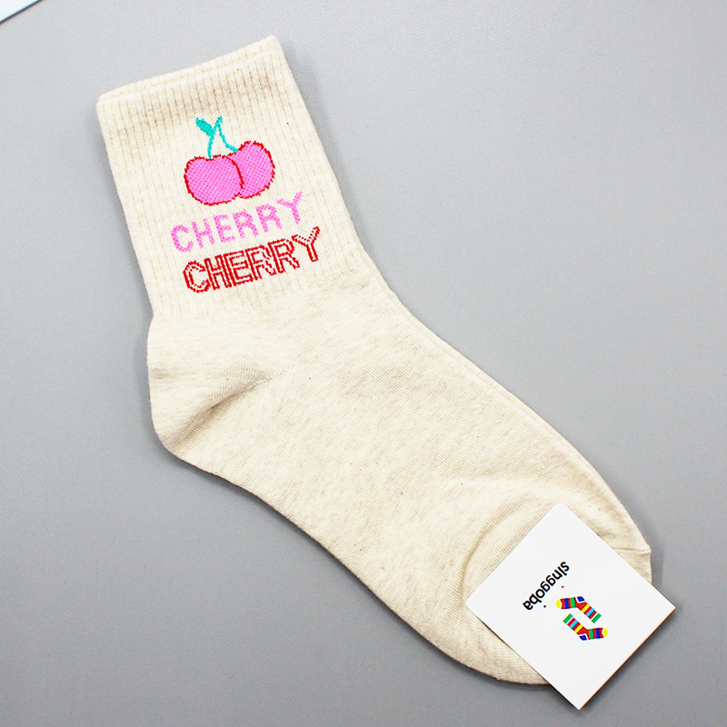 2022 한국 동대문 가을과 겨울 새로운 귀여운 체리 패턴 한국 여성 양말스토어 가기