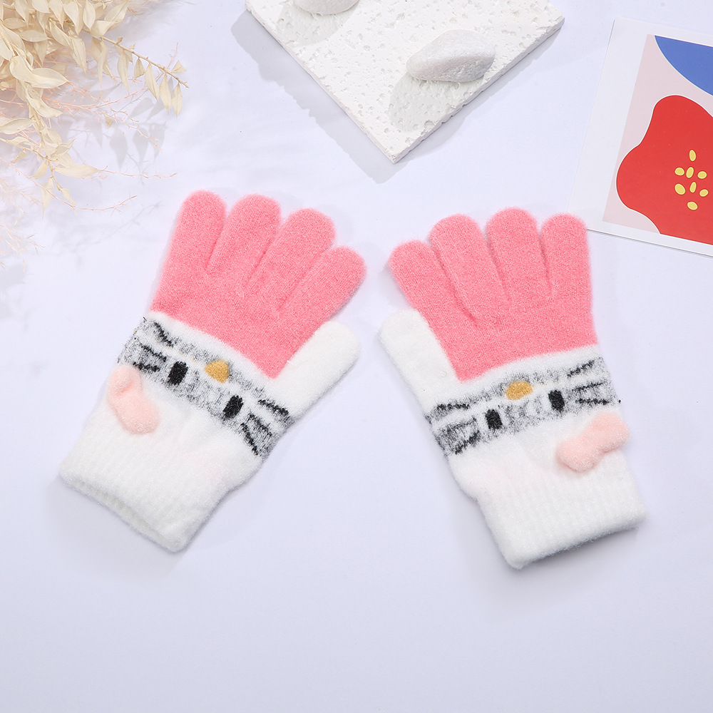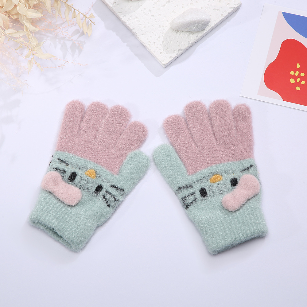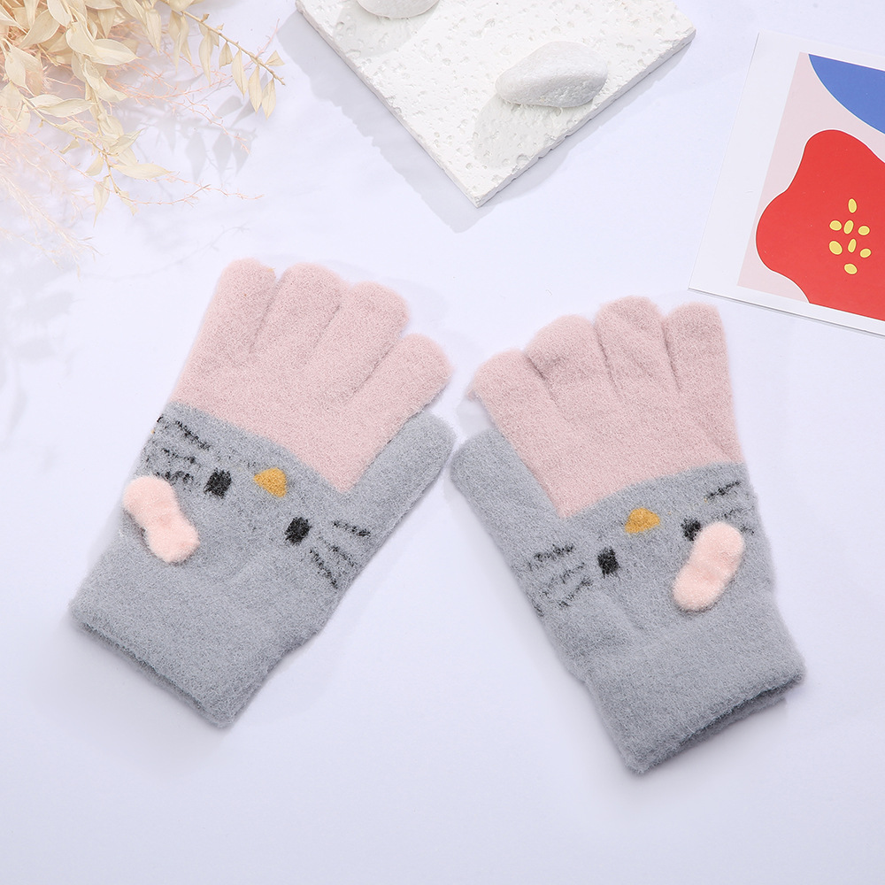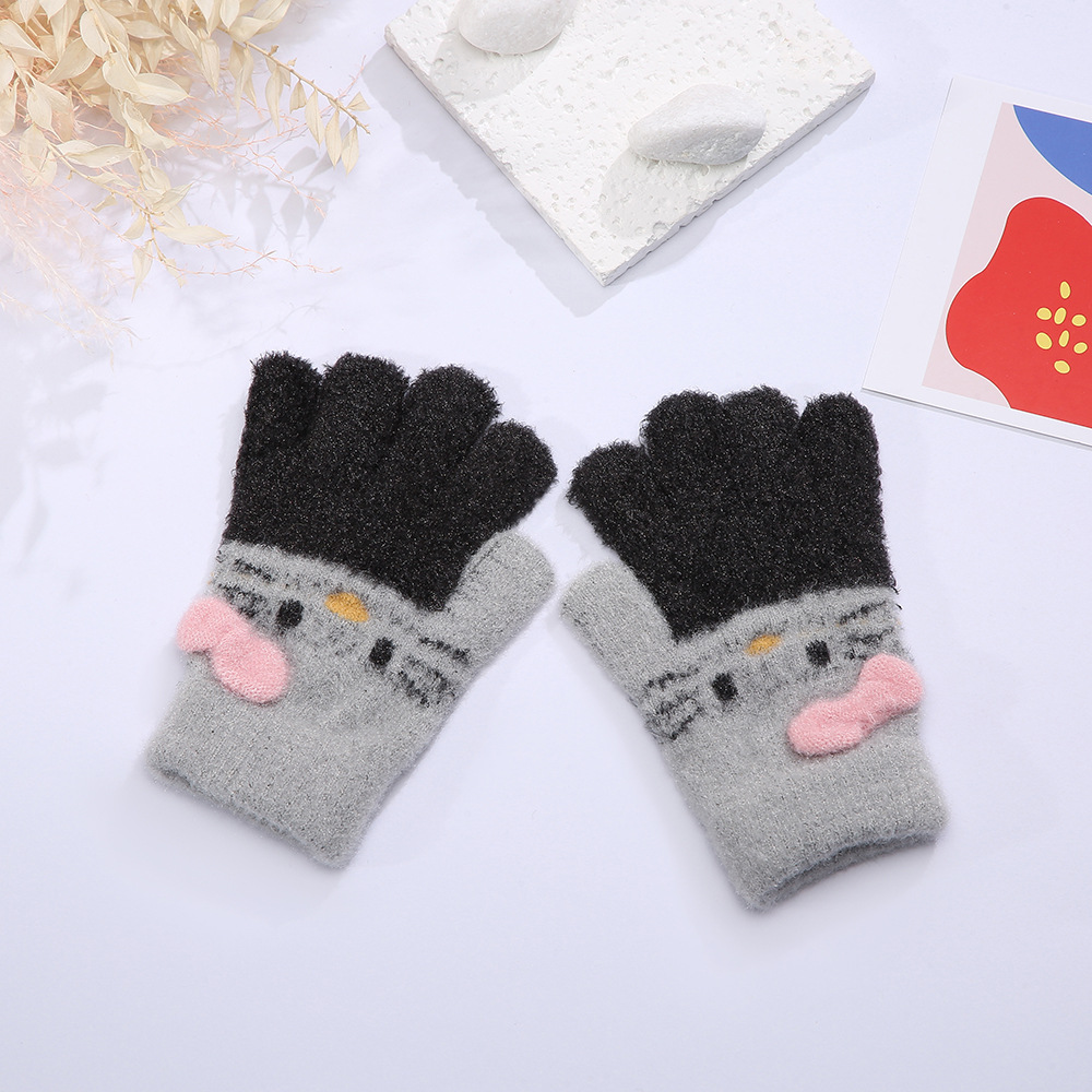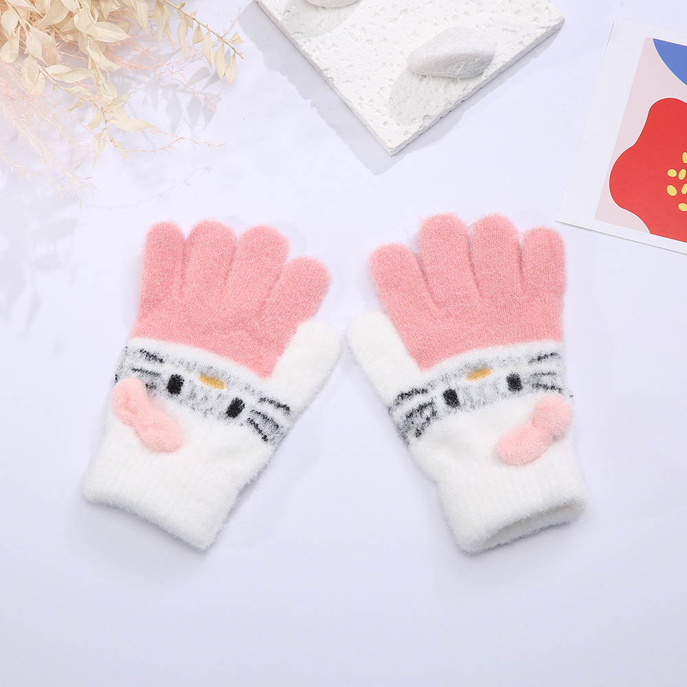 만화 귀여운 새끼 고양이 활 니트 장갑 어린이 모조 밍크 벨벳 따뜻한 장갑 학생 가을과 겨울 방한 장갑