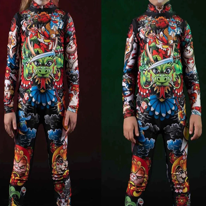 2022 새로운 크리스마스 3D 디지털 인쇄 성인 어린이 슬림 긴 소매 cos