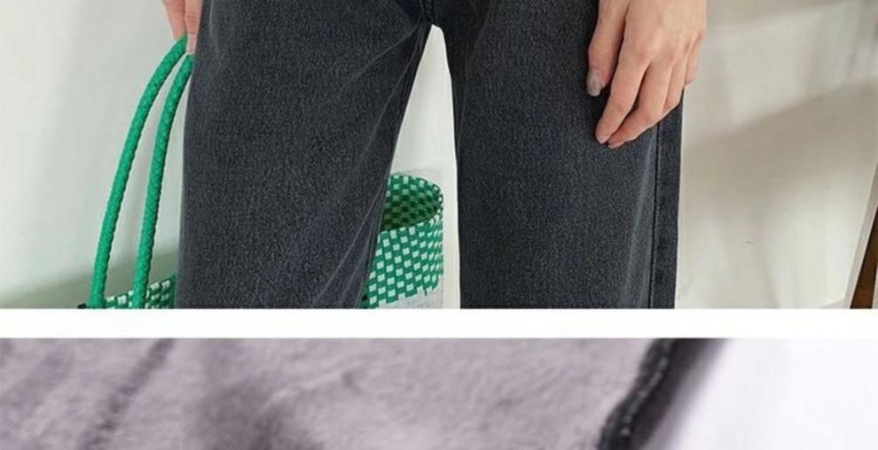 가을과 겨울 블랙 와이드 레그 기모 따뜻한 청바지 여자의 바지 겉옷 하이 웨이스트 슬리밍 느슨한 스트레이트 2022 New스토어 가기