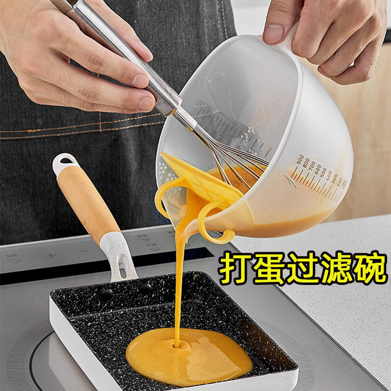 계란 그릇, 계란 액체 혼합, 힘줄 제거, 배수 노즐이있는 필터 분지, 손잡이 그릇, 플라스틱 투명 계란 구타 측정 컵스토어 가기