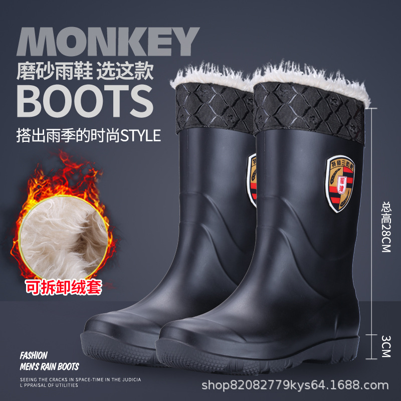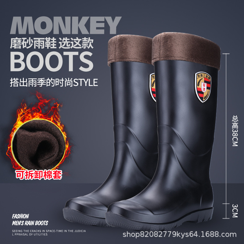 프로스트 블랙 바닥 레인 슈즈 남성용 두꺼운 미끄럼 방지 내마모성 워터 슈즈 면 두꺼운 벨벳 워터 부츠 건설 현장 방수 부츠 장화
