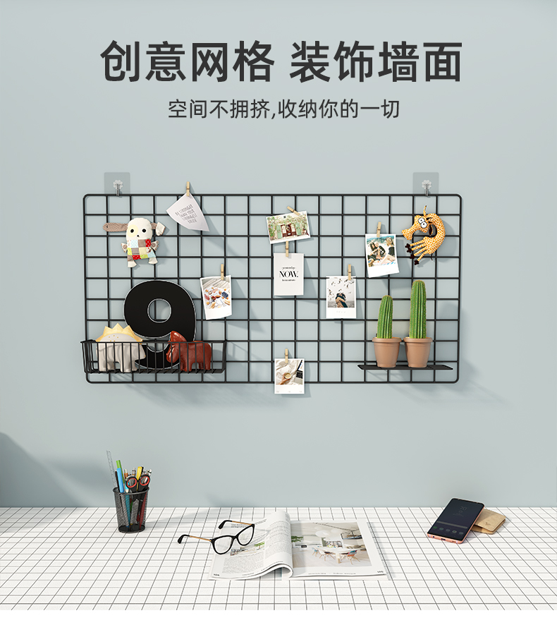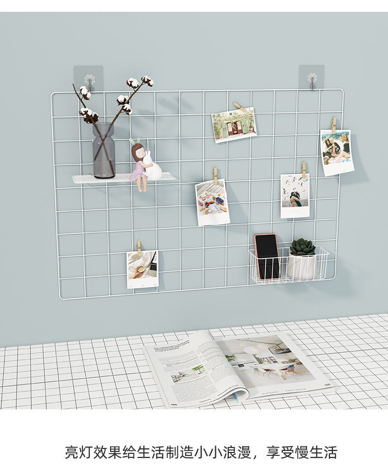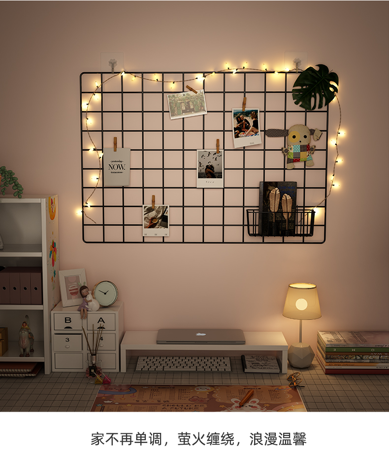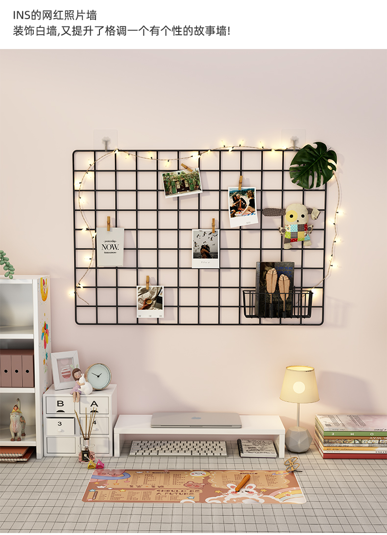 도매 벽 격자 선반 벽걸이 침실 비 천공 와이어 메쉬 사진 벽 기숙사 장식 펜던트 전시회