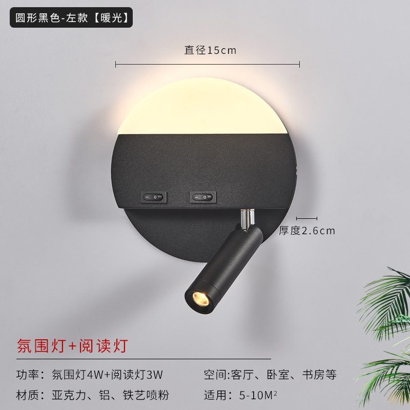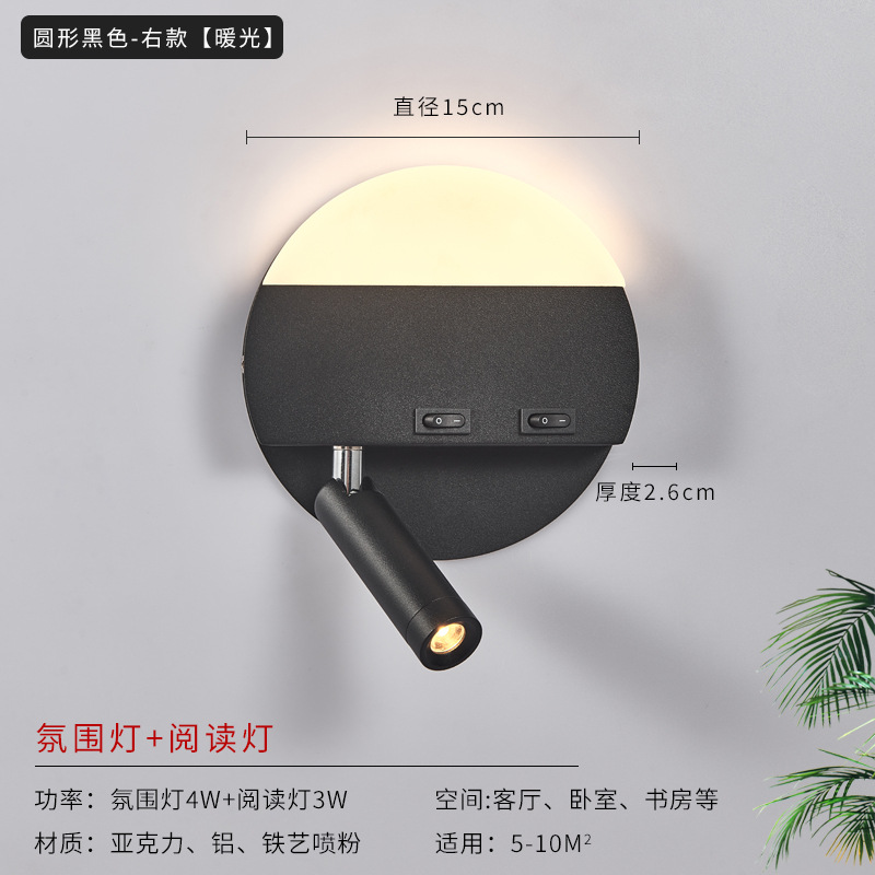 간단한 원형 LED 조명 연구 침실 머리맡 독서 벽 램프 크리 에이 티브 복도 배경 벽 램프 도매 미니멀리스트