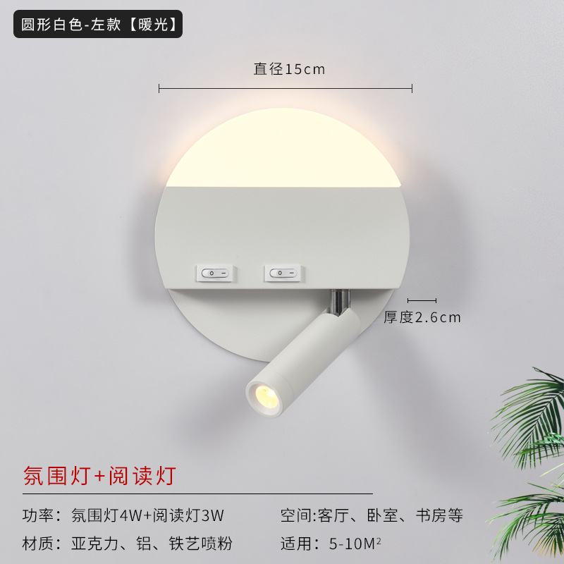 간단한 원형 LED 조명 연구 침실 머리맡 독서 벽 램프 크리 에이 티브 복도 배경 벽 램프 도매 미니멀리스트스토어 가기