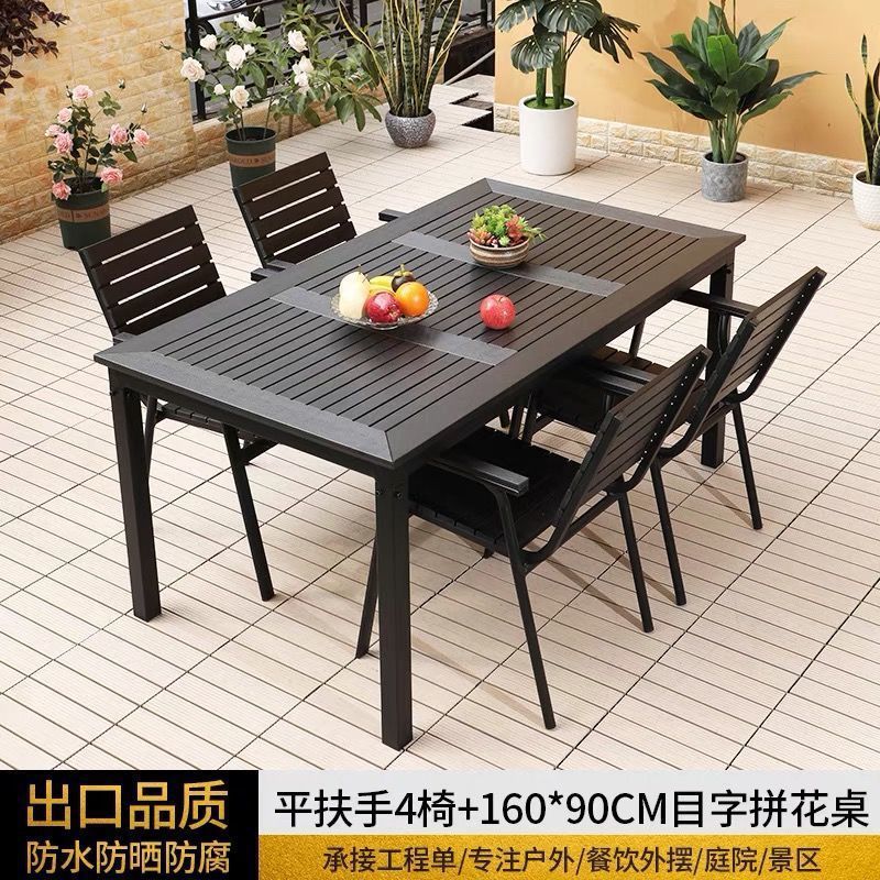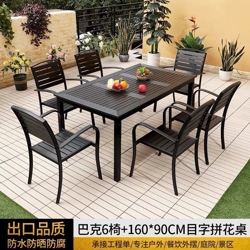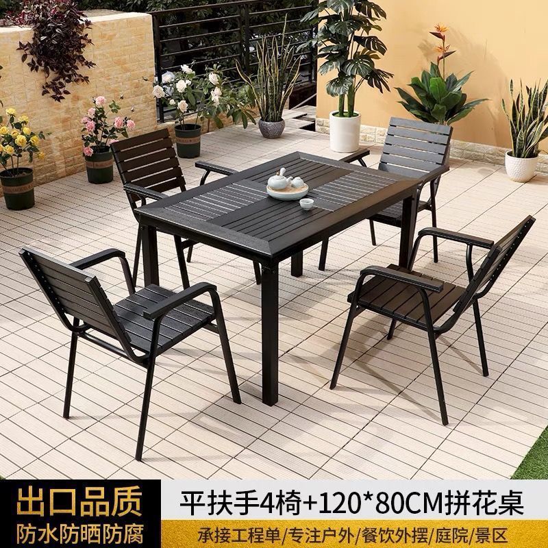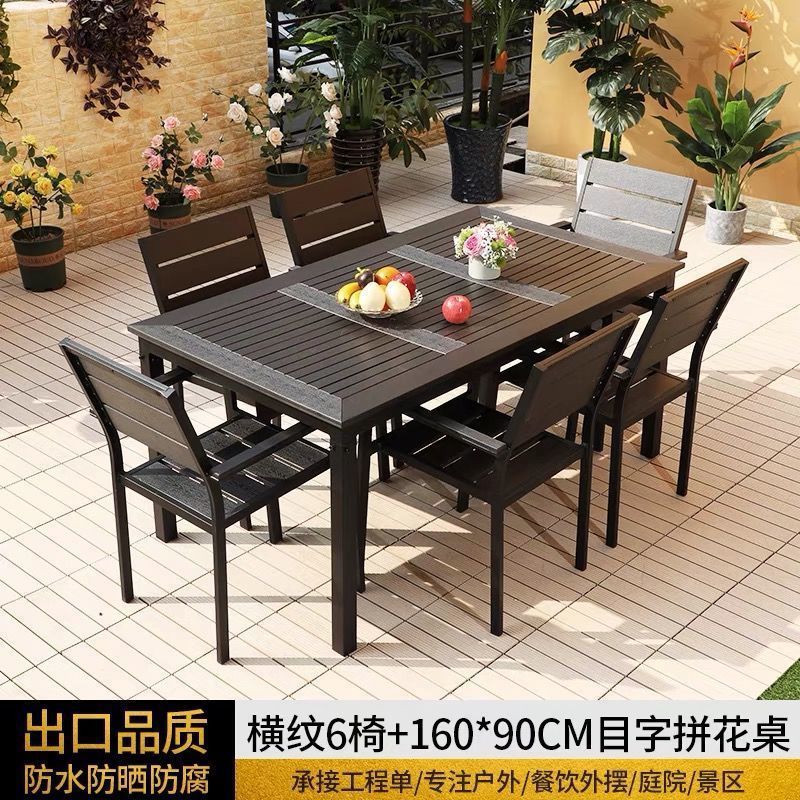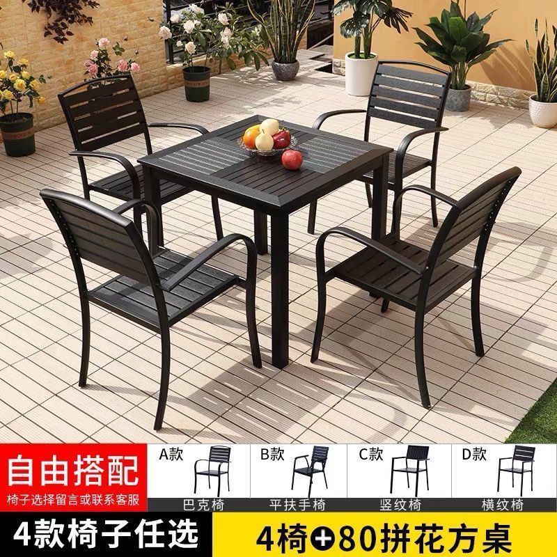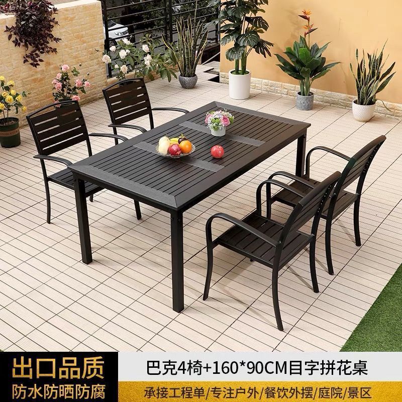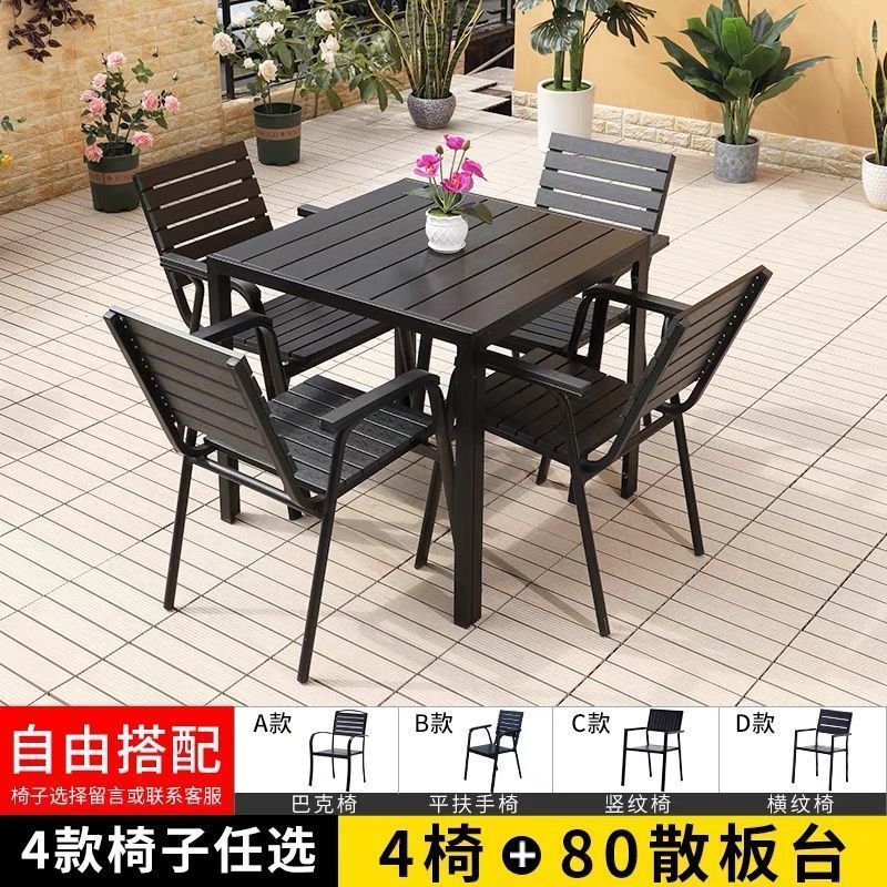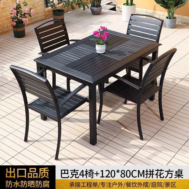 플라스틱 목재 테이블과 의자 세트, 안뜰 빌라 정원 야외 레저 발코니 내마모성 방부목 테이블과 의자 식탁스토어 가기