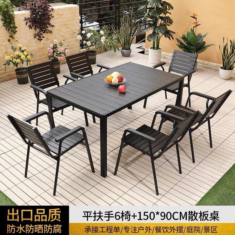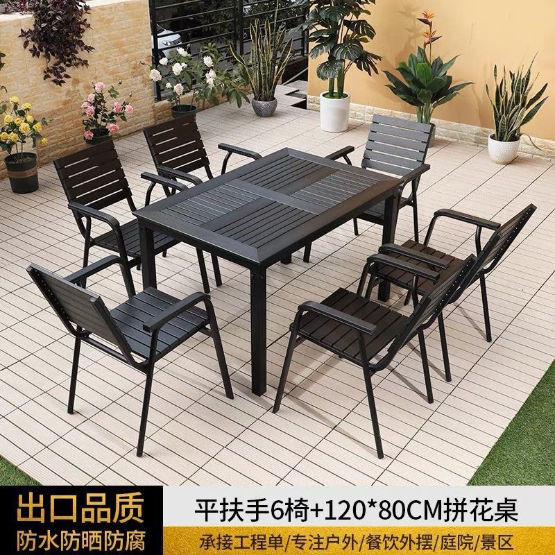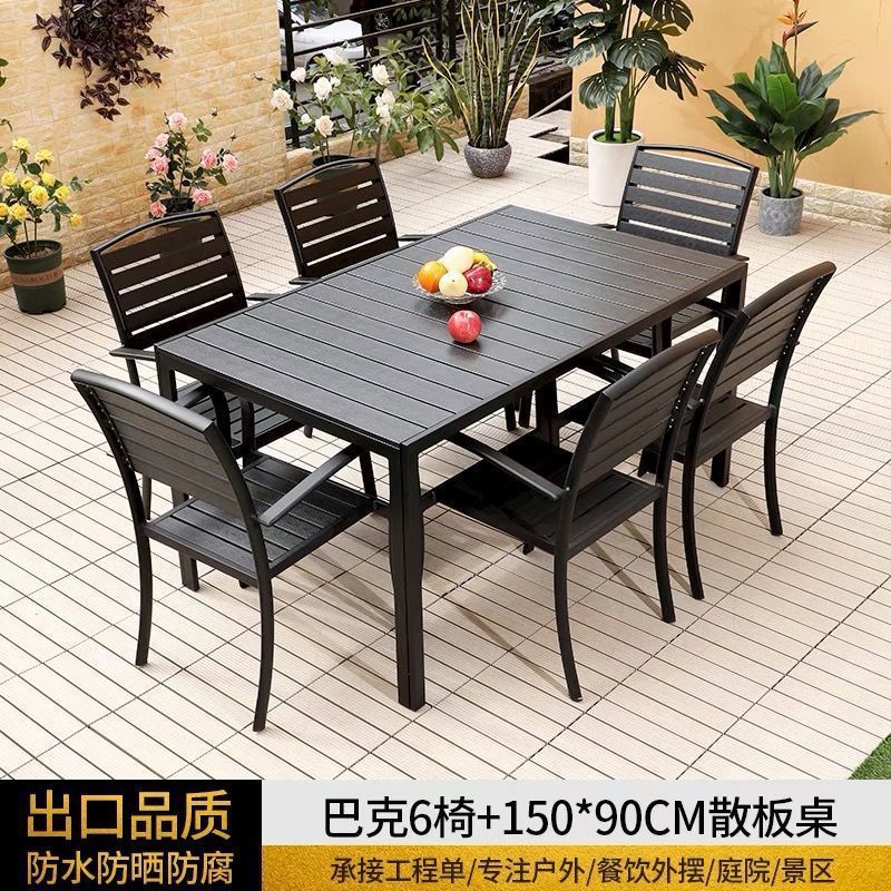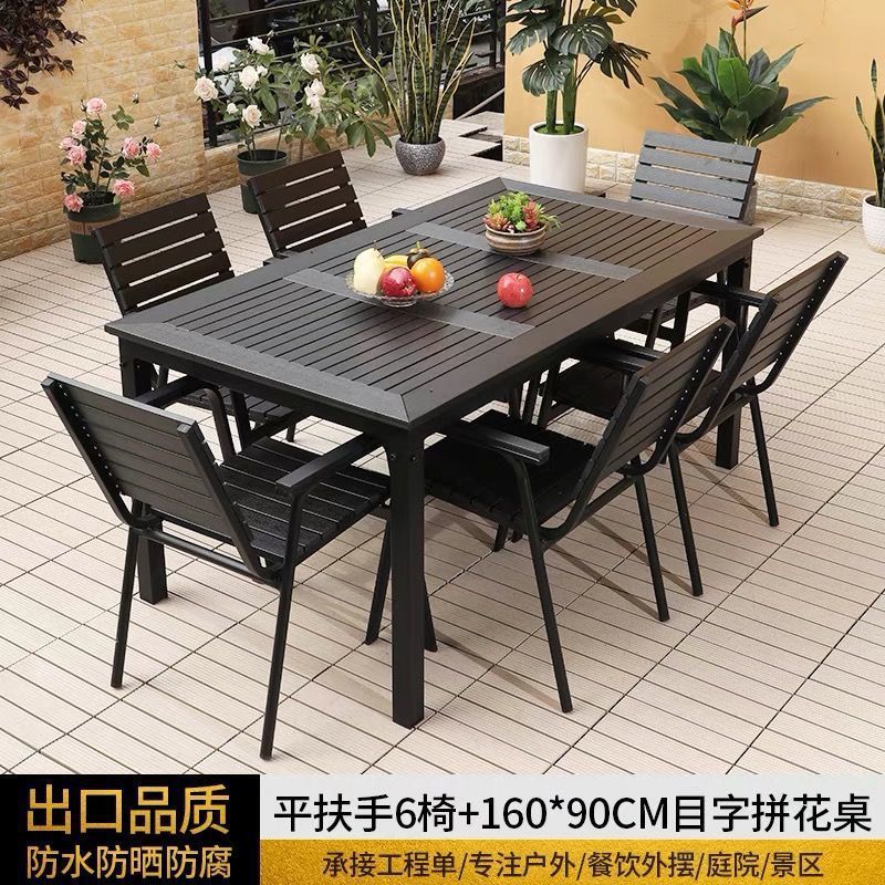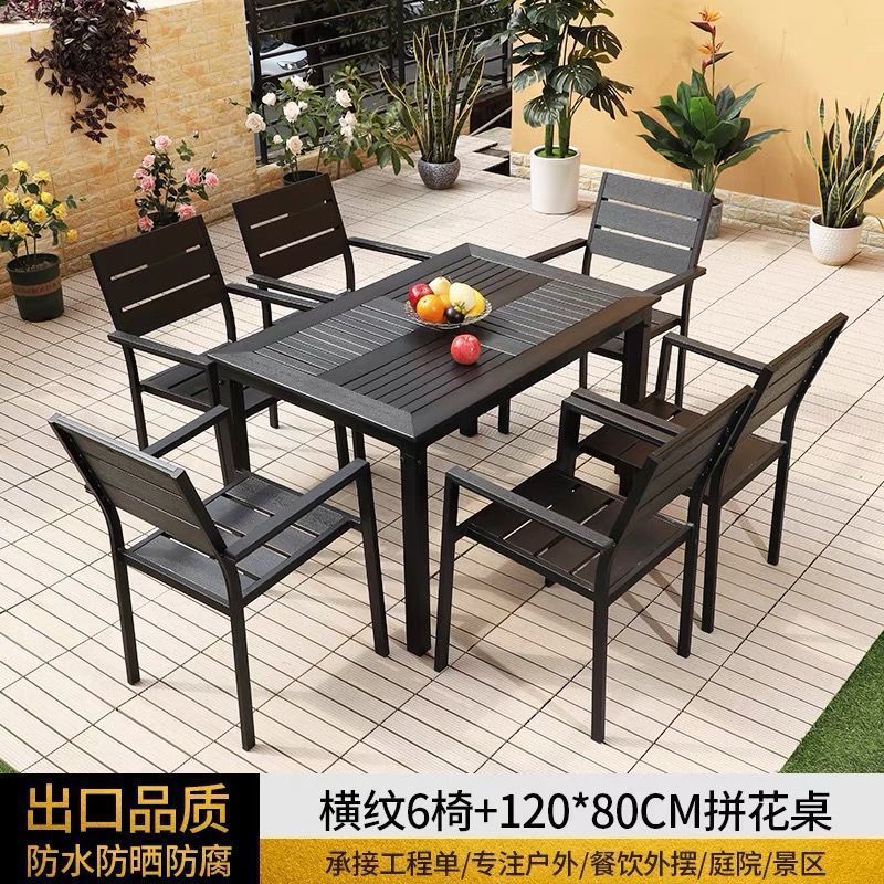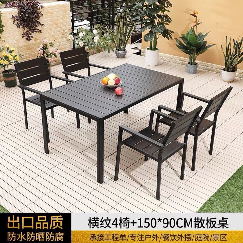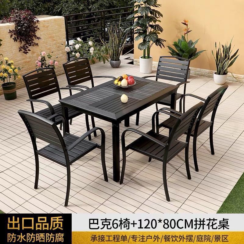 플라스틱 목재 테이블과 의자 세트, 안뜰 빌라 정원 야외 레저 발코니 내마모성 방부목 테이블과 의자 식탁스토어 가기
