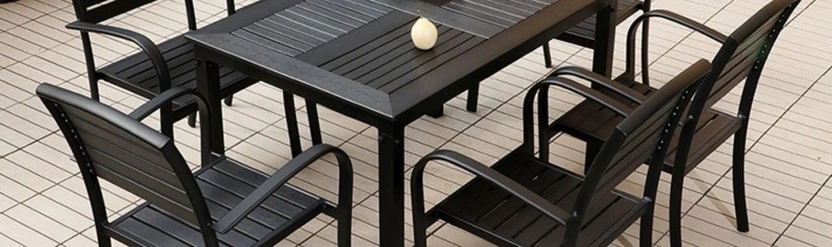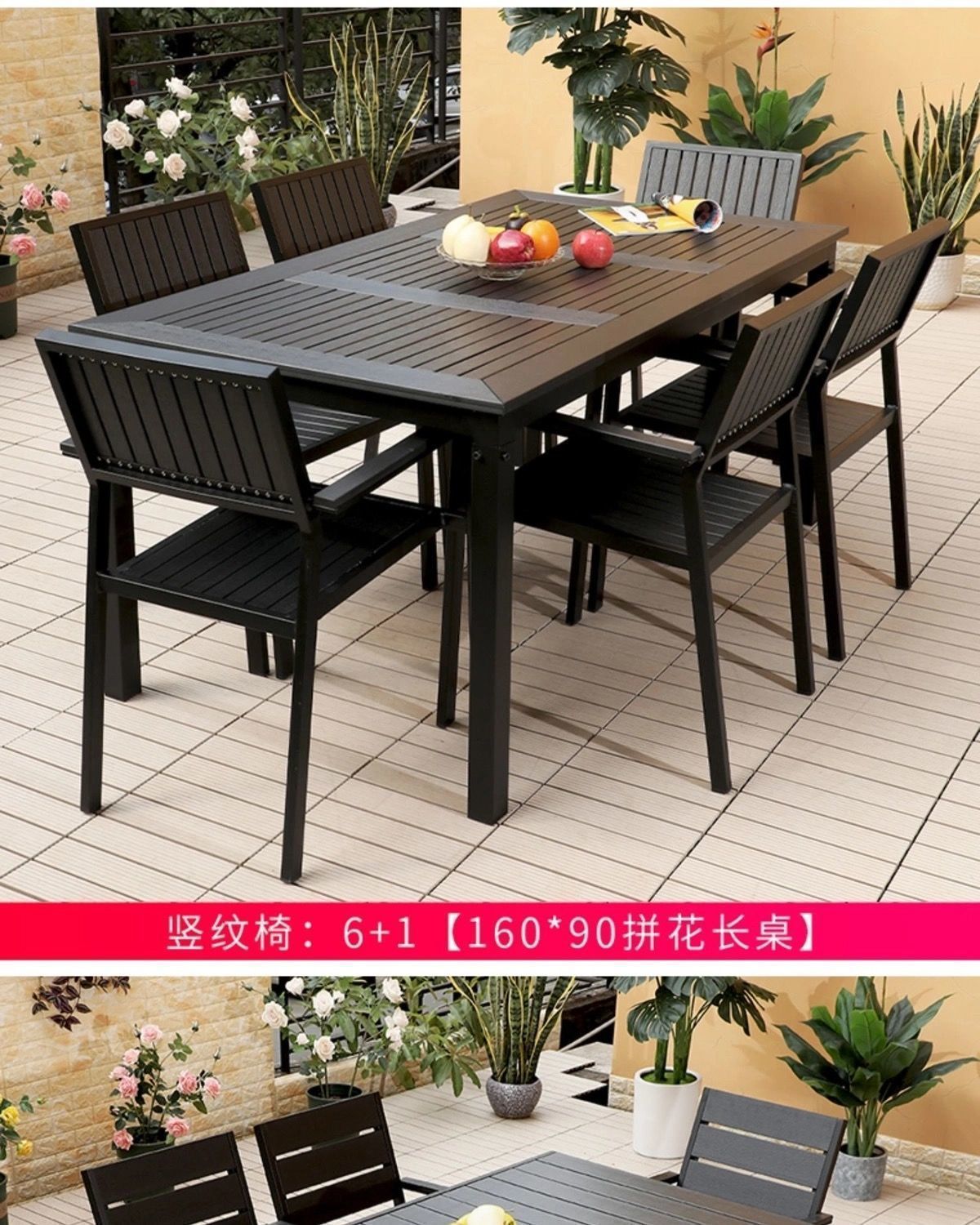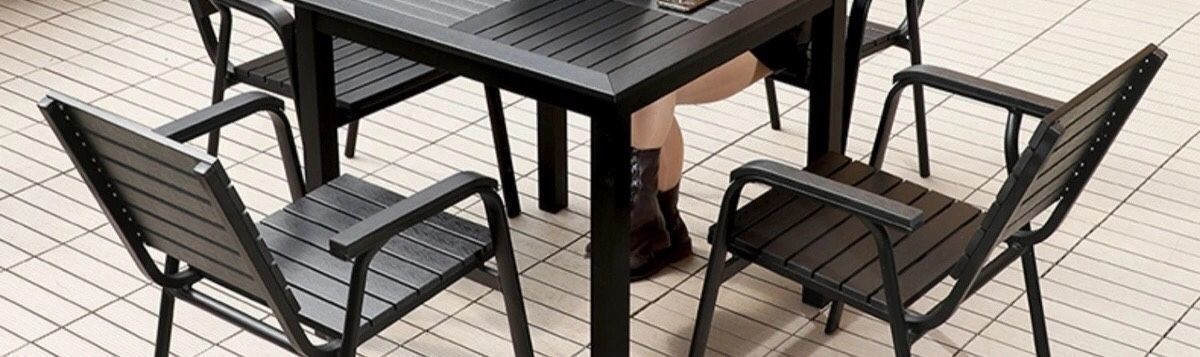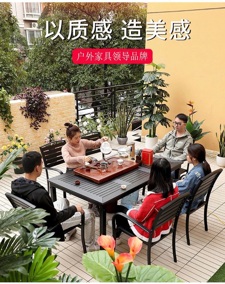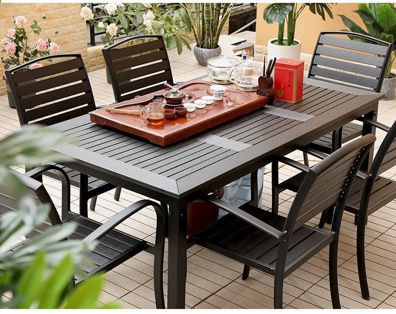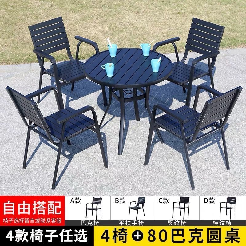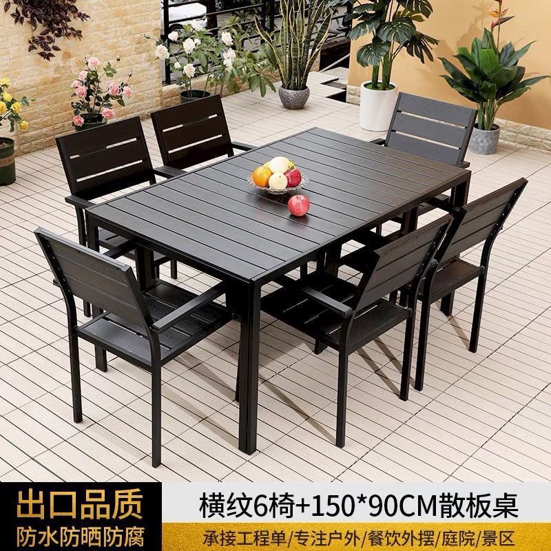 플라스틱 목재 테이블과 의자 세트, 안뜰 빌라 정원 야외 레저 발코니 내마모성 방부목 테이블과 의자 식탁스토어 가기